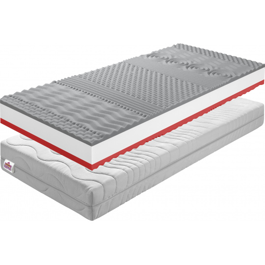 Sendvičová pěnová matrace BE TEMPO 30 NEW s potahem Chloe Activ, měkčí a tvrdší strana Materiál: PUR pěna Rozměry (ŠxD): 80x200 cm Výška matrace: 18 cm Tvrdost matrace: středně tvrdý Nosnost: 120 kg Se sedmi zónami Barva PUR pěny se může lišit Doporučujeme pružný lamelový (předpjaté, pružné lamely) Mezera mezi lamelami Max. 6 cm Tloušťka lamel 0,5-1 cm Kvalitní slovenský výrobek