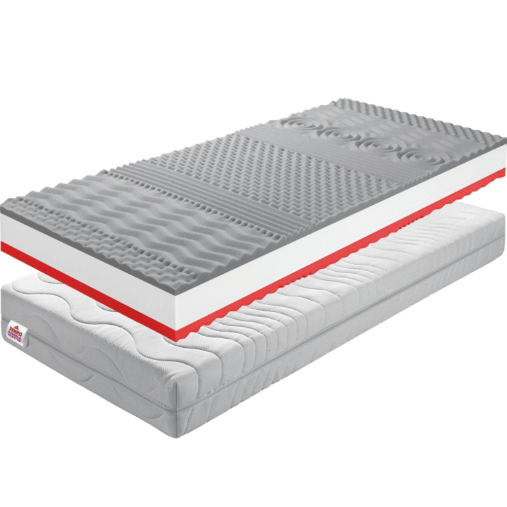 Sendvičová pěnová matrace BE TEMPO 30 NEW s potahem Chloe Activ, měkčí a tvrdší strana Materiál: PUR pěna Rozměry (ŠxD): 80x200 cm Výška matrace: 18 cm Tvrdost matrace: středně tvrdý Nosnost: 120 kg Se sedmi zónami Barva PUR pěny se může lišit Doporučujeme pružný lamelový (předpjaté, pružné lamely) Mezera mezi lamelami Max. 6 cm Tloušťka lamel 0,5-1 cm Kvalitní slovenský výrobek