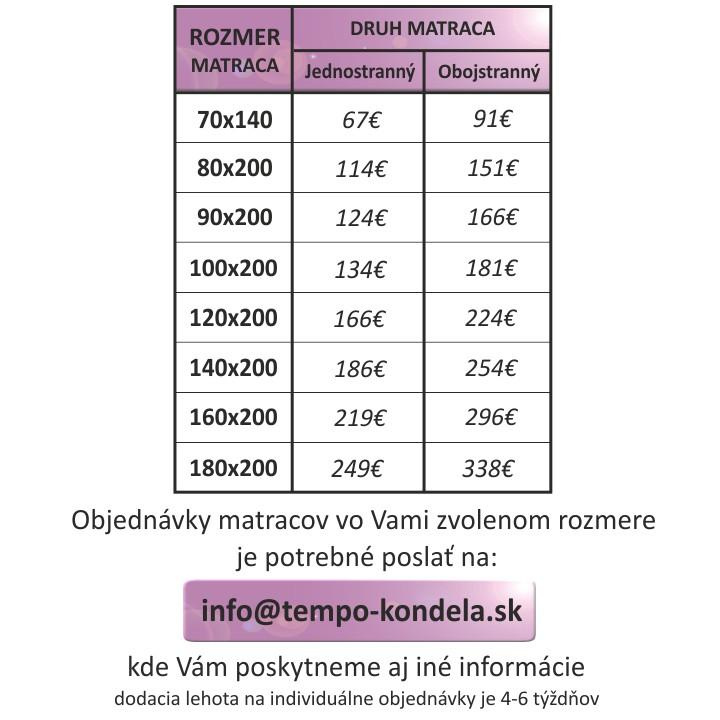 Matrace KOKOS MEDIUM. Rozměry (ŠxD): 80x200 cm Výška matrace: 16 cm Materiál: Bonelové pružiny / polyuretanová pěna / latexová kokosová deska / bavlněný potah Nosnost: molitanové strany je 80 kg a kokosové strany 100 kg. Hmotnost: 12 kg Tvrdost matrace: středně tvrdý T3/tvrdý T4