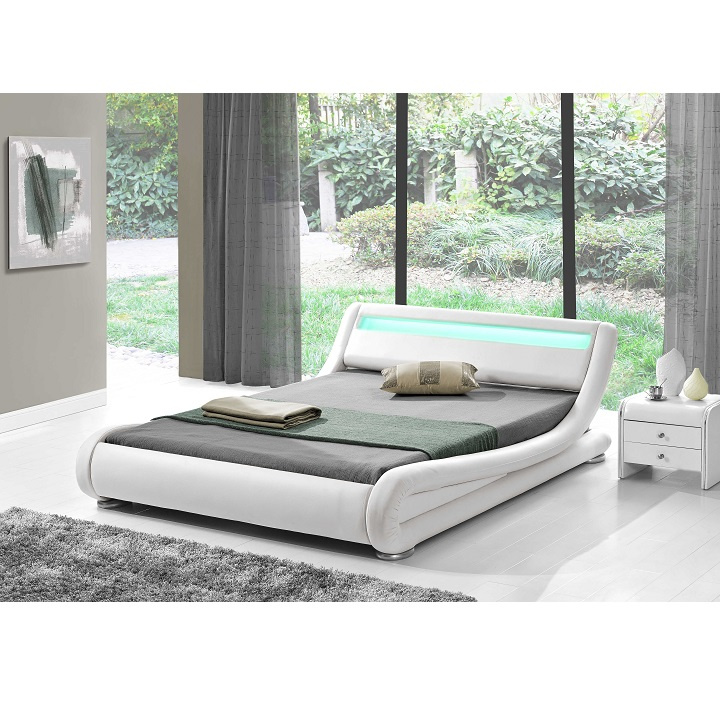 Moderní postel s RGB LED osvětlením, bílá, 180x200, FILIDA
