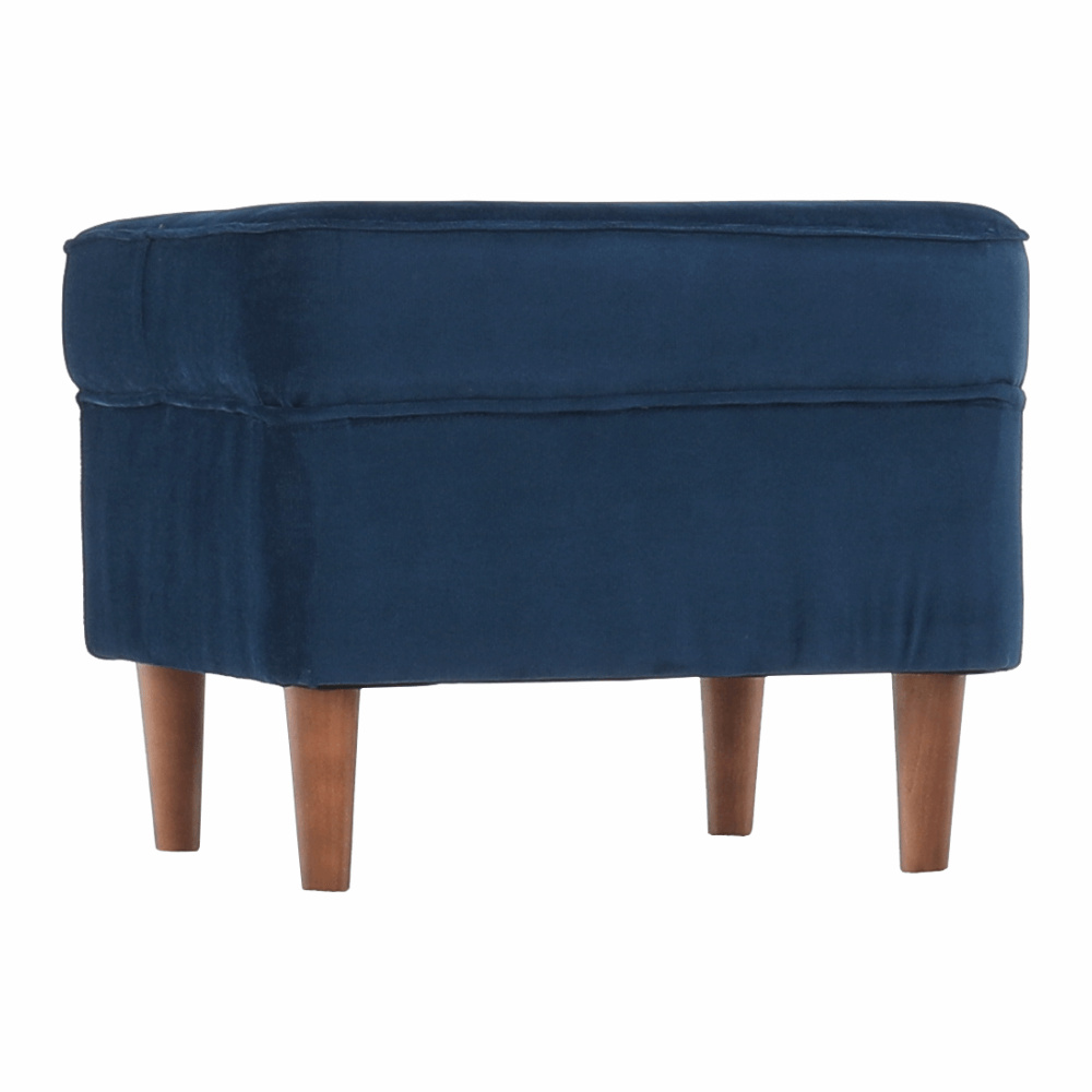 Moderní taburet RUFINO 3 NEW Materiál: látka Kronos 9 / dřevo Oděruodolnost textilie podle testu Martindale: 50 000 oděrek Barva: modrá / ořech Rozměry: (ŠxHxV): 40x40x40 cm Výška nožiček: 13 cm Výška spodního prostoru od podlahy: 13 cm Nosnost na osobu: 110 kg Barva nožiček se může lišit. Dodávané v demontu.