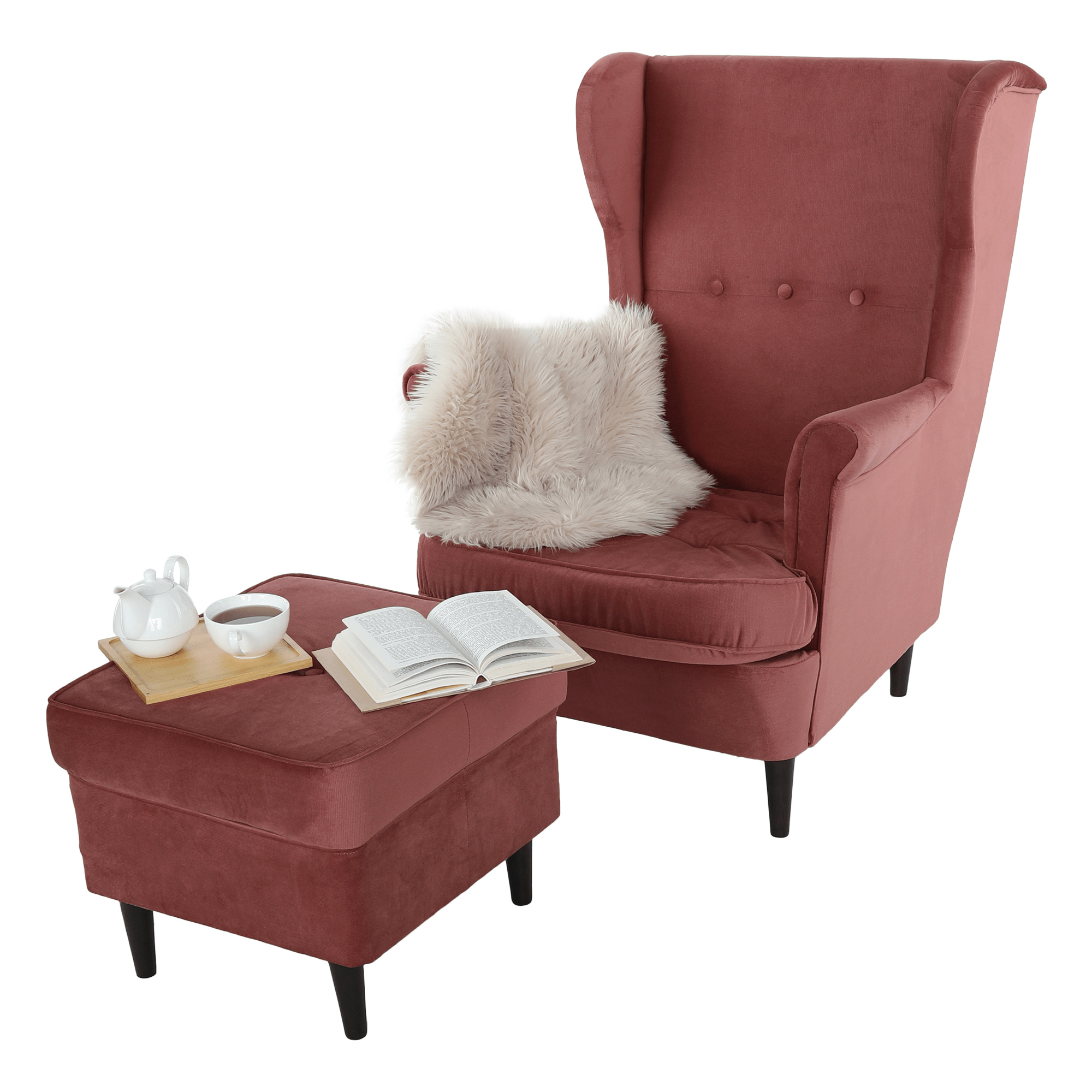 Moderní taburet, starorůžová/ořech, RUFINO 3 NEW