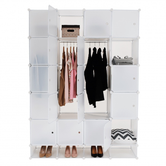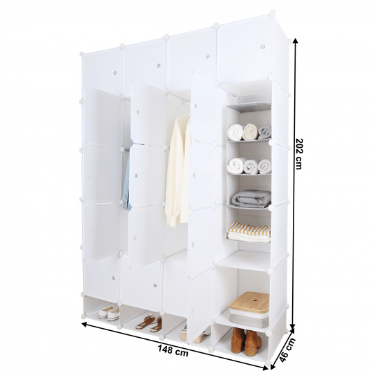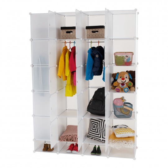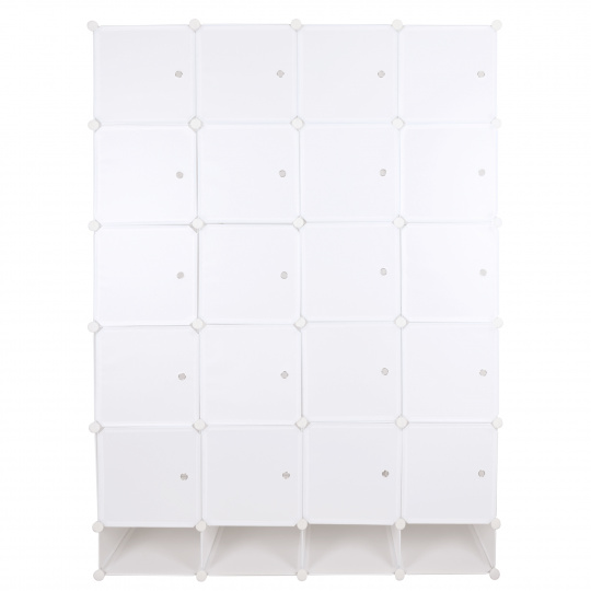 Materiál konstrukce: kov Materiál box: plast Barva: bílá Rozměry (ŠxHxV): 148x46x202 cm Spojovací prvky vyrobené z pevného ABS plastu Různé varianty rozmístění polic Nosnost police: 5 kg 20 úložných zavřených boxů 4 úložné otevřené boxy Multifunkční a praktická Součástí balení je závěsná tyč Boxy je třeba rovnoměrně zatěžovat Se závěsným systémem kovová konstrukce Snadná údržba Vhodná do obývacího pokoje, ložnice Do haly, chodby i kanceláře Flexibilní v jakémkoliv prostoru Dodávané v demontu V balení se nachází upevnění ke zdi, které je třeba používat spolu s výrobkem, aby nedošlo k převrácení.