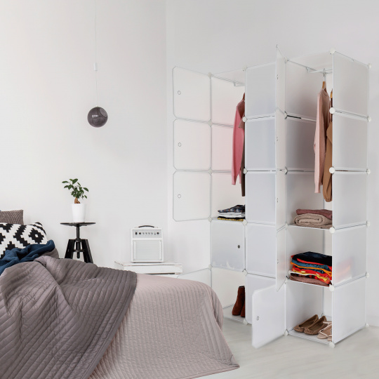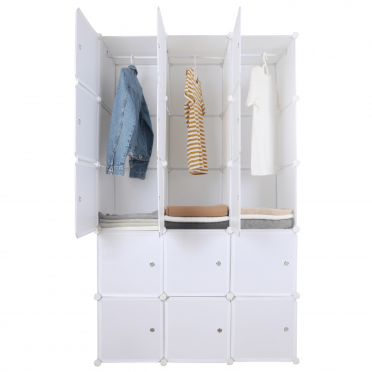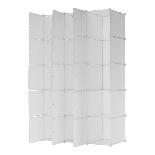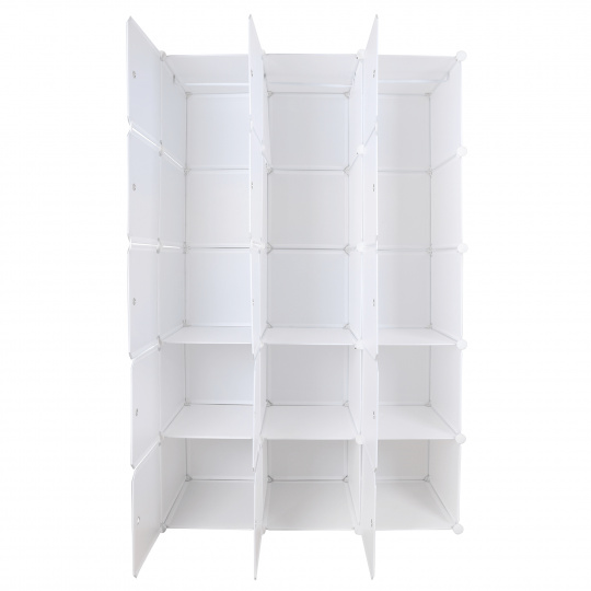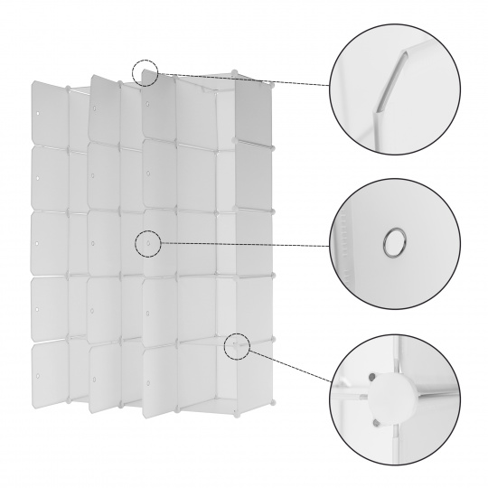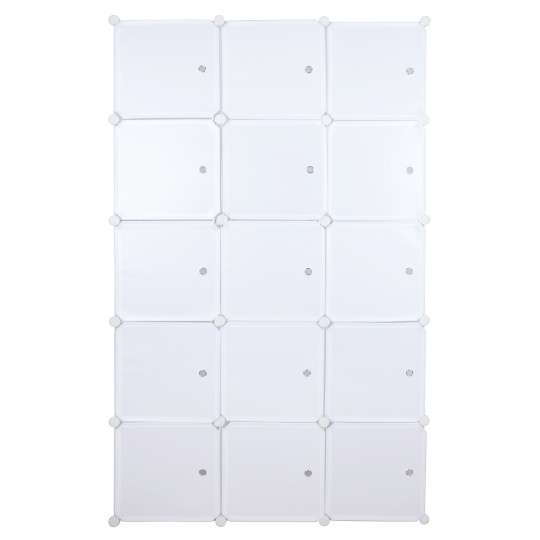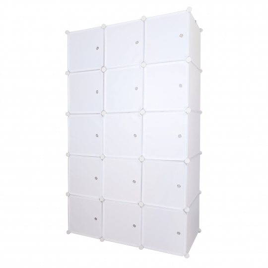 Materiál konstrukce: kov Materiál box: plast Barva: bílá Rozměry (ŠxHxV): 111x46x185 cm Spojovací prvky vyrobené z pevného ABS plastu Různé varianty rozmístění polic Nosnost police: 5 kg 15 úložných boxů Multifunkční a praktická Součástí balení je závěsná tyč Boxy je třeba rovnoměrně zatěžovat Se závěsným prostorem kovová konstrukce Snadná údržba Vhodná do obývacího pokoje, ložnice Do haly, chodby i kanceláře Dodávané v demontu V balení se nachází upevnění ke zdi, které je třeba používat spolu s výrobkem, aby nedošlo k převrácení.