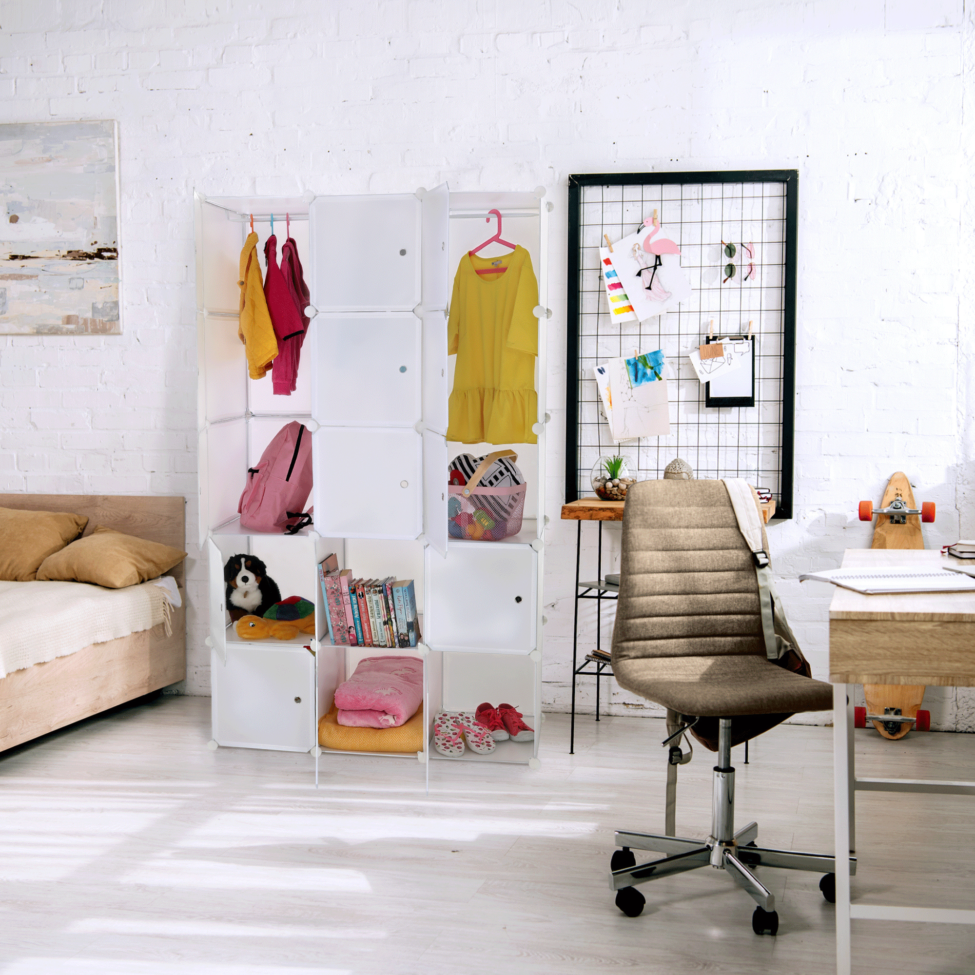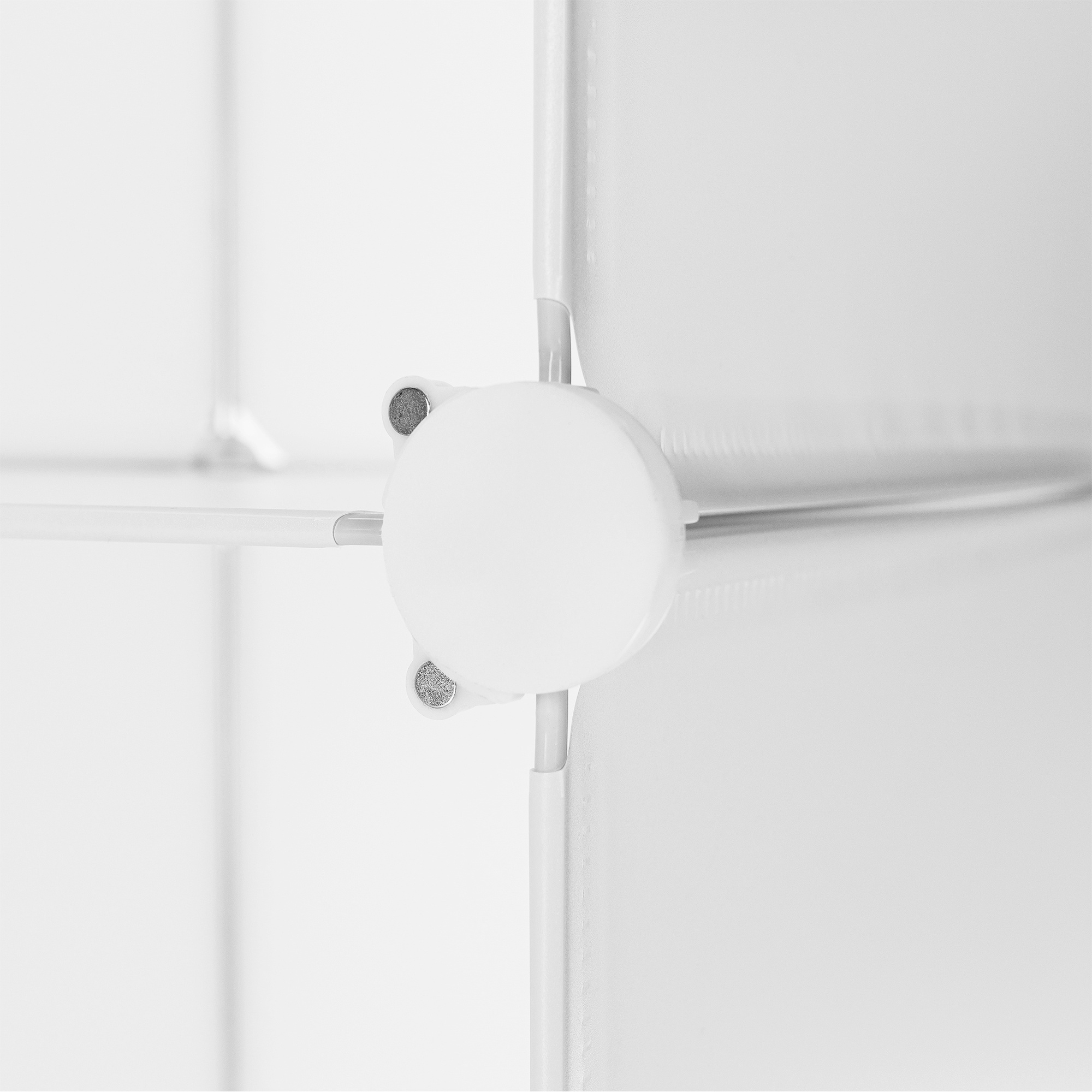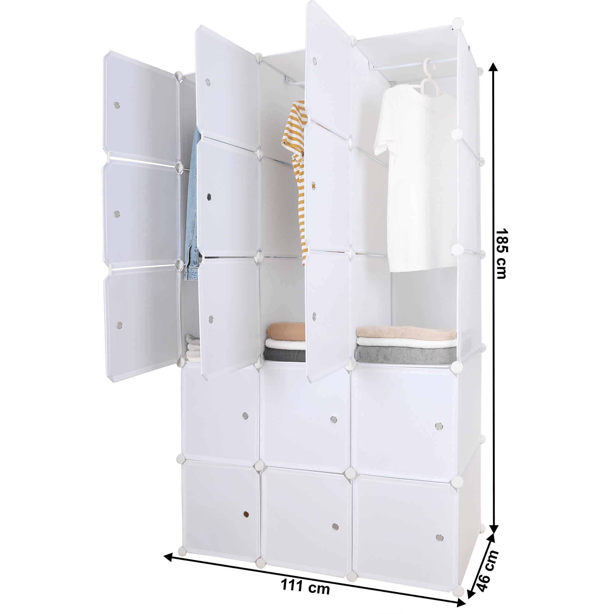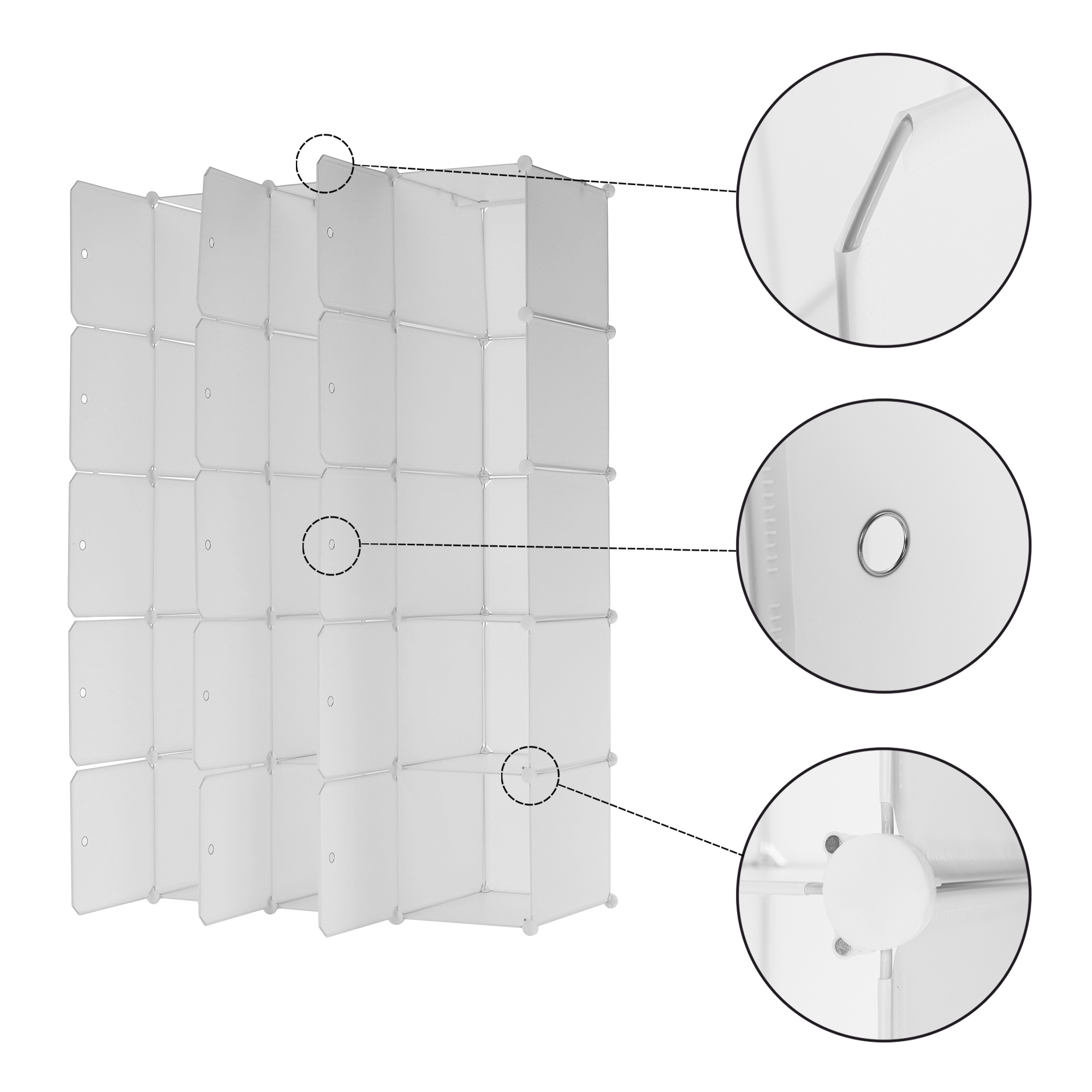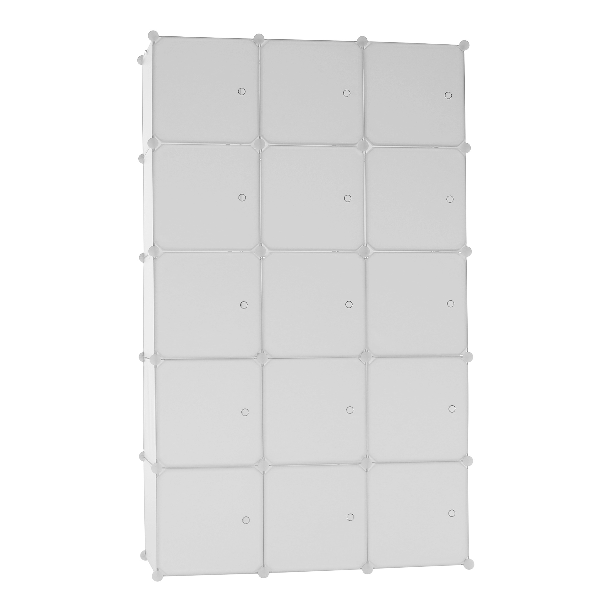 Materiál konstrukce: kov Materiál box: plast Barva: bílá Rozměry (ŠxHxV): 111x46x185 cm Spojovací prvky vyrobené z pevného ABS plastu Různé varianty rozmístění polic Nosnost police: 5 kg 15 úložných boxů Multifunkční a praktická Součástí balení je závěsná tyč Boxy je třeba rovnoměrně zatěžovat Se závěsným prostorem kovová konstrukce Snadná údržba Vhodná do obývacího pokoje, ložnice Do haly, chodby i kanceláře Dodávané v demontu V balení se nachází upevnění ke zdi, které je třeba používat spolu s výrobkem, aby nedošlo k převrácení.
