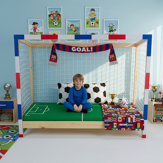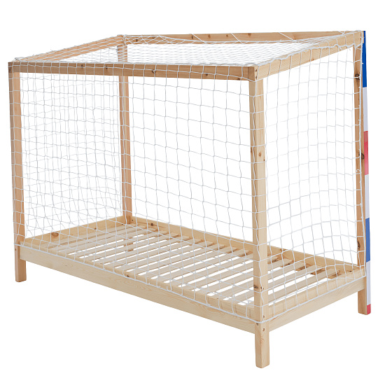 Materiál: masiv borovice Barva: přírodní/bílá/modrá/červená Rozměry (ŠxHxV): 206x96x165 cm Plocha na spaní (ŠxD): 90x200 cm Tloušťka materiálu: 2 cm Výška bočnice: 12 cm Výška zadní části: 149 cm Výška po rošt: 22 cm Nosnost: 95 kg Na nožičkách Výška nožiček: 16 cm Postel ve tvaru fotbalové brány Dodávána s překližkovým rolovaným roštem Dodávána bez matrace Možnost zakoupit pružinovou matraci z naší nabídky Doporučená maximální výška matrace: 15 cm Dodávána se sítí Barva sítě: bílá Dodáváno v demontu