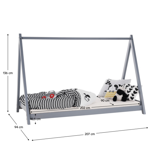 Montessori postel s zarolovaným roštem GROSI Materiál: borovicové dřevo / překližka Provedení: šedá Rozměry (ŠxHxV): 207x94x136 cm Rozměry (ŠxD): 90x202 cm Výška po rošt: 10,5 cm Nosnost: 80 kg Tloušťka materiálu: 20 mm Tloušťka materiálu nohou (ŠxH): 60x40 mm Možnost dokoupit matraci s rozměrem 90x200 cm na základě naší nabídky. Dodávané v demontu.
