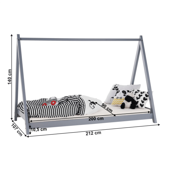 Montessori postel, šedá, borovicové dřevo, GROSI