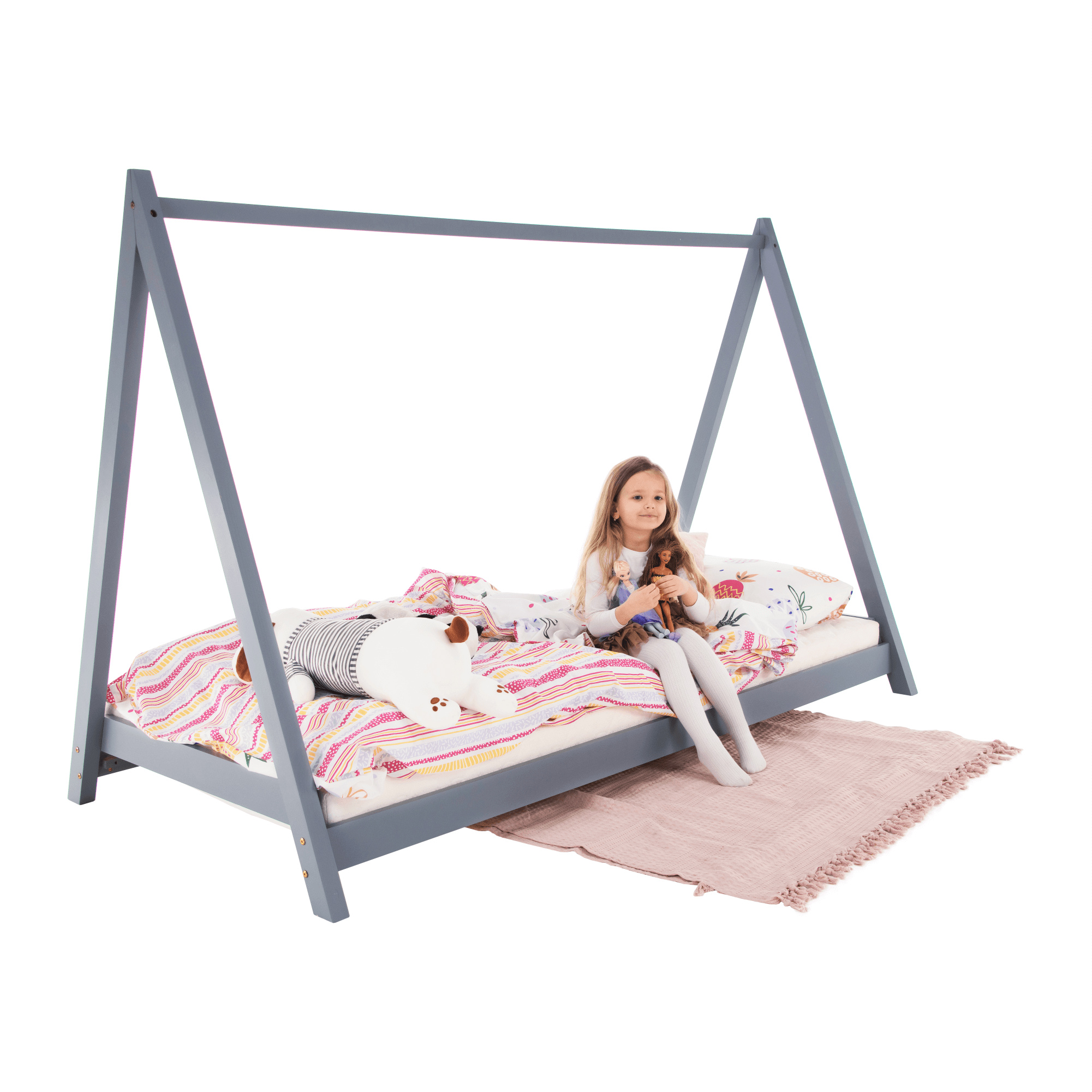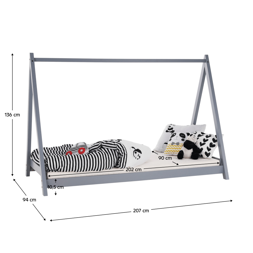 Montessori postel, šedá, borovicové dřevo, GROSI
