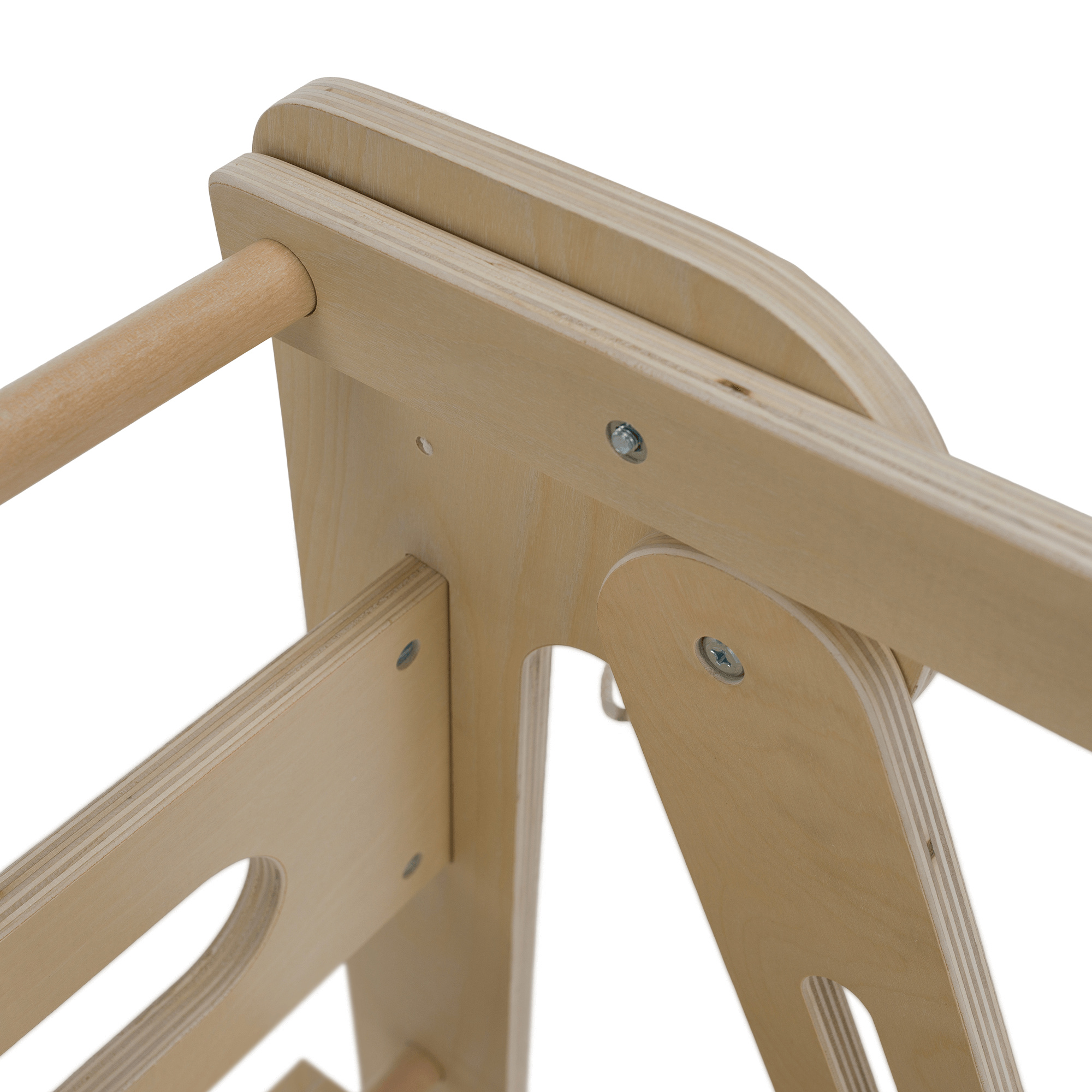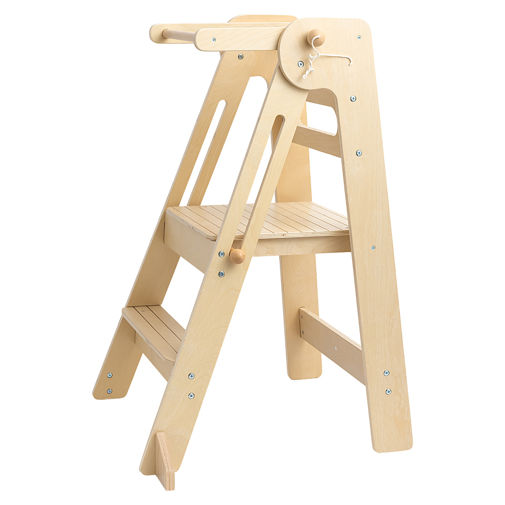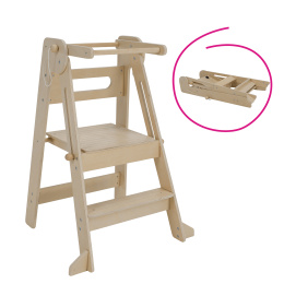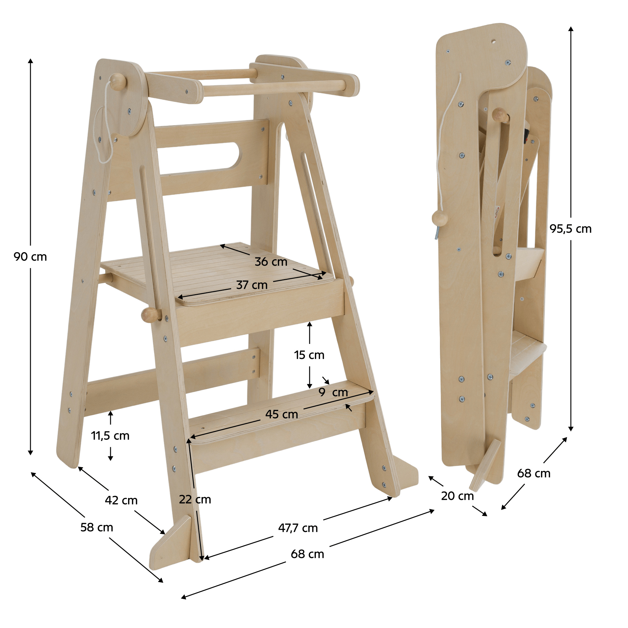 Materiál: překližka Barva: přírodní Rozměry (ŠxHxV): 68x58x90 cm Nosnost: max. 50 kg Hmotnost: 7 kg Tloušťka materiálu: 1,5 cm Montessori učící věž Skládací Jednoduchá manipulace Rozměry po složení (ŠxHxV): 68x20x95,5 cm Vede děti k samostatnosti a učení Zaoblené hrany Uzamykací mechanismus Použití v interiéru Používejte pouze na rovných površích Čistěte jemným navlhčeným hadříkem a následně otřete do sucha Určena pro děti starší jednoho roku, které dokáží stát bez pomoci Splňuje bezpečnostní normy EN 14988:2017 + A1:2020 Dodáváno v demontu