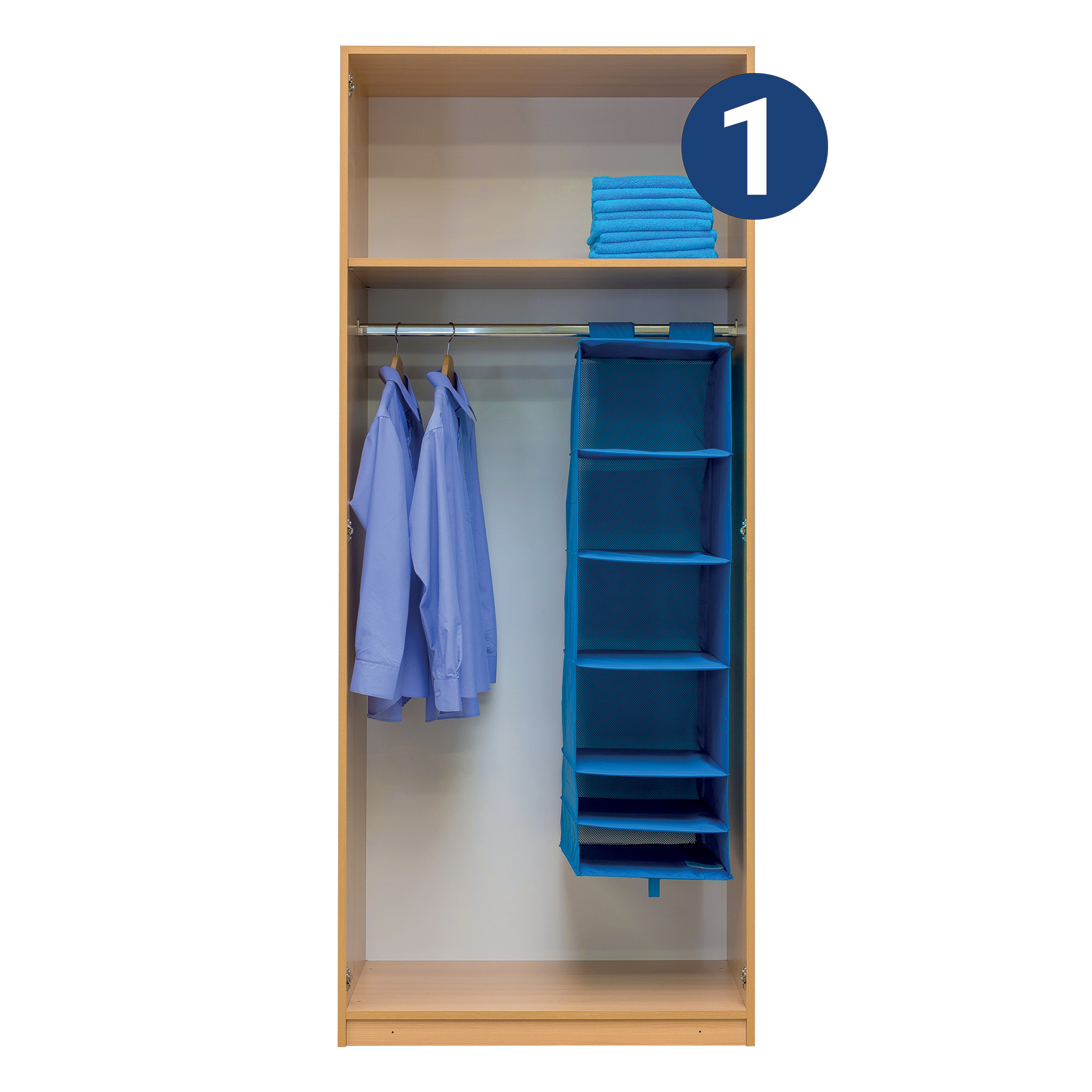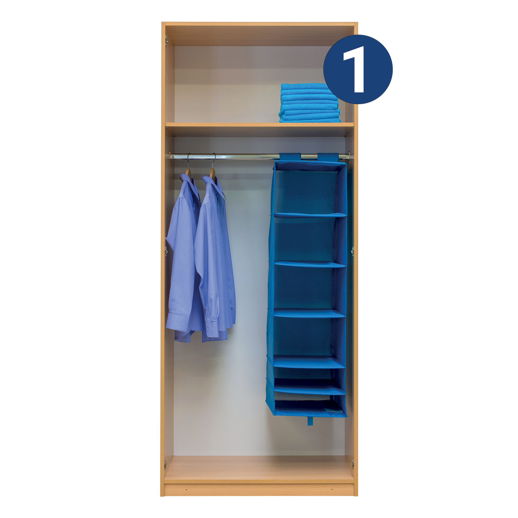Skříň AIDA 1 s jednou policí a volným prostorem se šatní tyčí nalezne své uplatnění především pro úschovu sezonního oblečení. Skříň AIDA 1 je vyrobena z lamina o síle 18 mm. Výběr z několika akčních dekorů. Kvalitní kování a spojovací materiál je bez použití plastových součástek, vyjma ochranných krytek. Výškově nastavitelné nohy pro dokonalé vyrovnání uvnitř skříně. 3D klipový pant s tlumením excentricky stavitelný. Praktické a efektní ABS hrany.