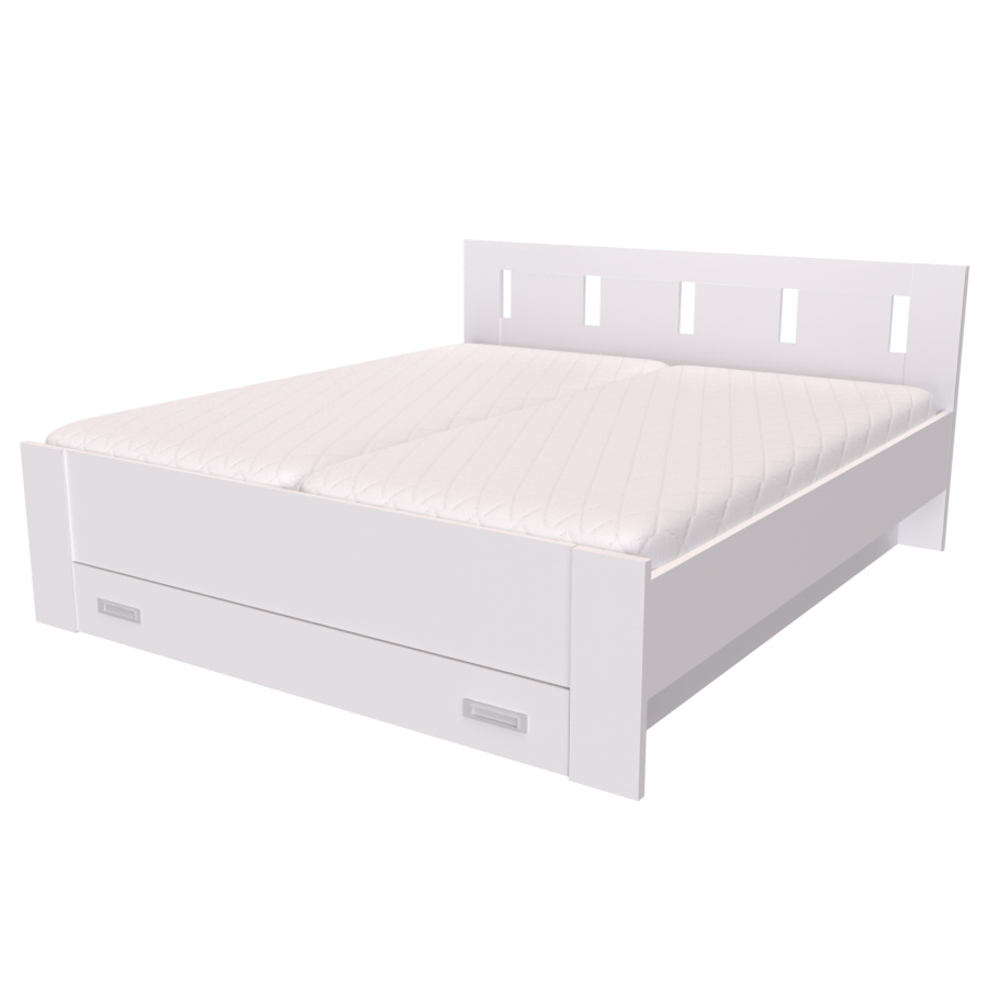 Dvoulůžko BENO vyniká především svým velkým úložným prostorem ve formě zásuvky. Čelo dvojlůžkové postele BENO poskytuje vzdušný prostor u zdi a minimalizuje tak možnost tvorby vlhkosti v oblasti dvoulůžka. Čelo a nohy dvoulůžka jsou vyrobeny v síle lamina 25mm, bočnice 18 či 25mm. Výběr z několika akčních dekorů. Kvalitní kování a spojovací materiál je bez použití plastových součástek, vyjma ochranných krytek. Zvýšená lehací plocha 50 až 65 cm (včetně matrace o výšce 16 cm). Možnost volby roštu a matrace. Výškově nastavitelné kování do 8 poloh, lze tak rošt umístit do výšky od 32 do 43 cm dle typu matrace. Efektní a praktické ABS hrany. Značkové kování Hettich. Od šířky 120 cm je k dvojlůžku kovová středová stabilizační noha. Úložný prostor již v ceně dvoulůžka.