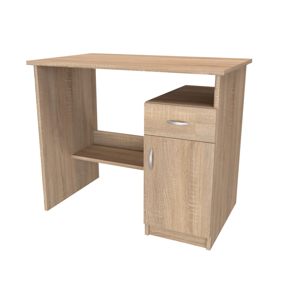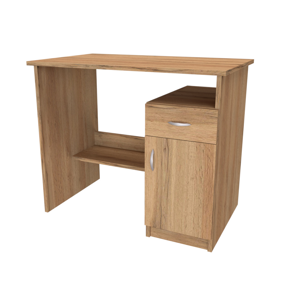 Stůl v jednoduchém provedení, který skvěle zapadá do menších pokojů. Psací stůl DELTA využijete i pro Vaše tvoření či pro šicí stroj. Univerzální provedení: zásuvky na pravé/levé straně. Vyrobeno z lamina o síle 18mm. Výběr akčních dekorů. Kvalitní kování a spojovací materiál je bez použití plastových součástek, vyjma ochranných krytek. Hranění i z nepohledových stran.