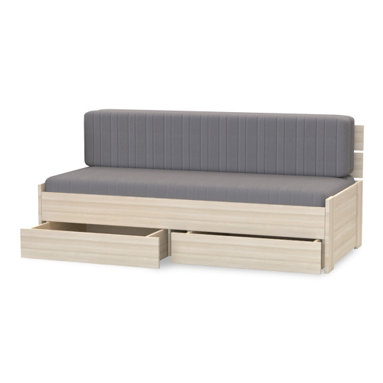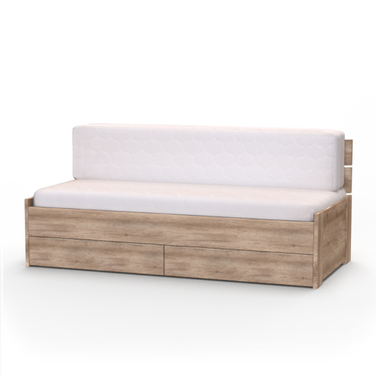 Je skvělým řešením při využívání prostoru efektivně. Slouží jako pohodlné místo pro spánek během noci a zároveň jako pohodlná pohovka během dne. Rozkládací pohovka EDEN s úložným prostorem přináší neomezený komfort a funkčnost v jednom, proměňuje se v prostorné lůžko o rozměrech 170x200 cm. V rozloženém stavu se tak jedná o kvalitní lůžko, které splňuje všechny nároky na ZDRAVÝ A SPOKOJENÝ SPÁNEK. Vyrobeno z lamina o síle 18mm a 25mm. Kvalitní kování a spojovací materiál je bez použití plastových součástek, vyjma ochranných krytek. Zvýšená lehací plocha 53 cm (za použití matrace 16 cm). Snadno přístupný velký úložný prostor rozdělený na 2 části, každá z částí o rozměru 89×84,5 cm. Součástí lůžka jsou 2 lamelové rošty (v ceně). Nosnost roštu je 2x130kg. Cena je včetně dvou roštů, bez matrace.