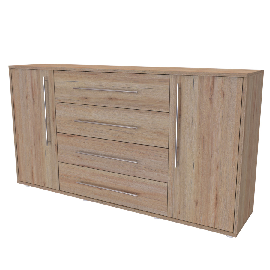 Moderní komoda, vhodná i pro zařízení místonosti v "Provence" stylu. Využití najde jak v ložnici, tak i v dětském pokoji či předsíni. Kvalitní zásuvky, úchytky a pojezdy jsou přizpůsobeny častému otevírání. Vyrobeno z lamina o síle 18mm. Výběr akčních dekorů. Kvalitní kování a spojovací materiál je bez použití plastových součástek,vyjma ochranných krytek.