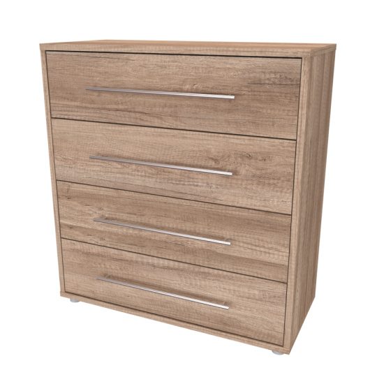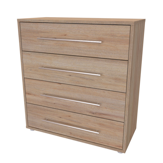 Moderní komoda, vhodná i pro zařízení místonosti v "Provence" stylu. Využití najde jak v ložnici, tak i v dětském pokoji či předsíni. Kvalitní zásuvky, úchytky a pojezdy jsou přizpůsobeny častému otevírání. Vyrobeno z lamina o síle 18mm. Výběr akčních dekorů. Kvalitní kování a spojovací materiál je bez použití plastových součástek,vyjma ochranných krytek.