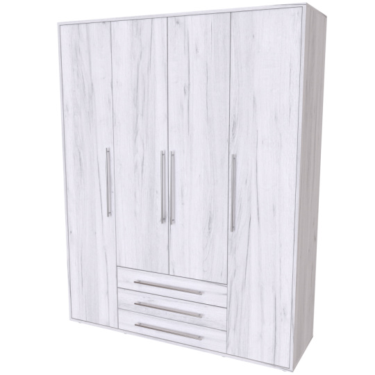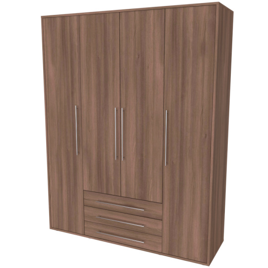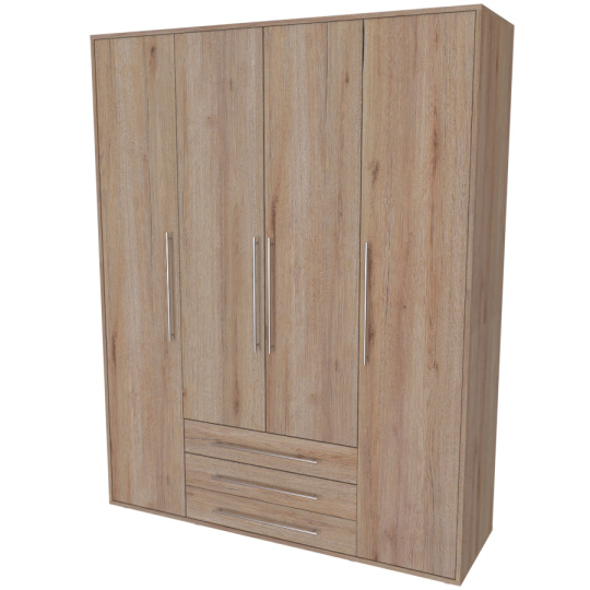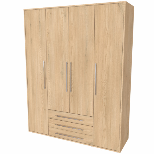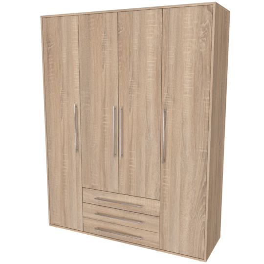 Moderní skříň, vhodná nejen pro rodinu, která potřebuje efektivně využít prostor. Elegantní provedení vhodné pro všechny generace. Vyrobeno z lamina o síle 18mm Kvalitní zásuvky a pojezdy jsou přizpůsobeny častému otevírání. Výběr akčních dekorů. Kvalitní kování a spojovací materiál je bez použití plastových součástek,vyjma ochranných krytek. Skříň má efektní a praktické ABS hrany. Výška nožek od země je 2 cm, nožičky jsou nastavitelné, maximální výška je 3 cm. Lze osadit zrcadlem. Dvě varianty vnitřního uspořádání. Skříň je z výroby připravena na obě varianty, rozložení si volíte až při montáži.