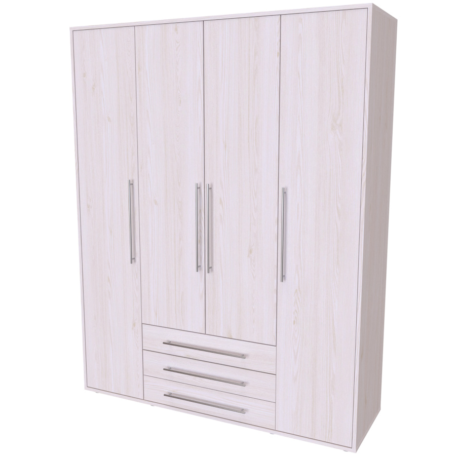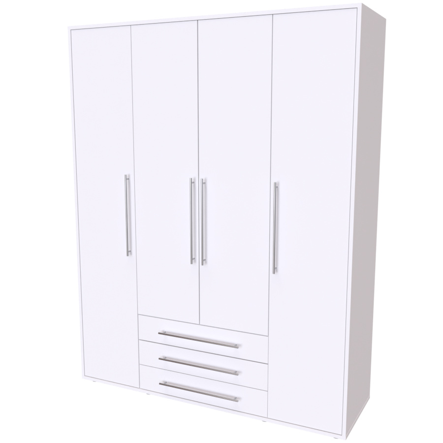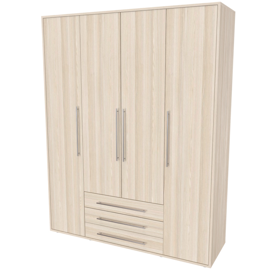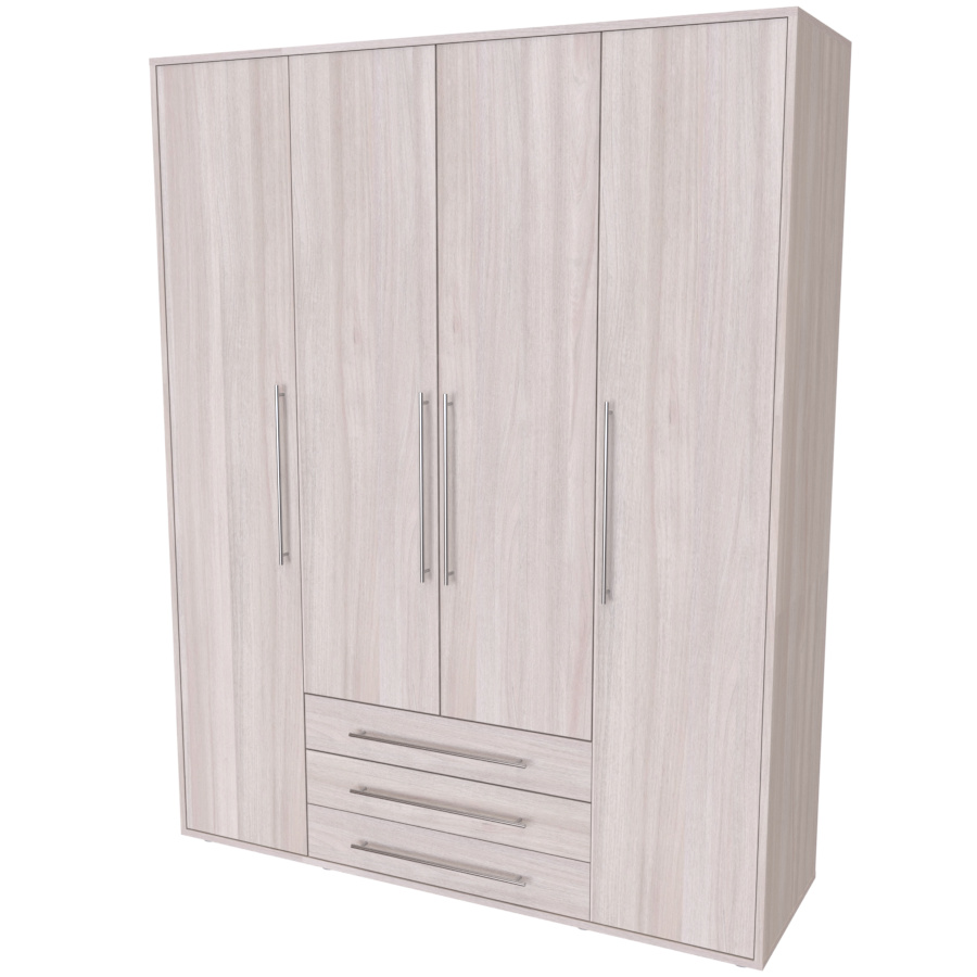 Moderní skříň, vhodná nejen pro rodinu, která potřebuje efektivně využít prostor. Elegantní provedení vhodné pro všechny generace. Vyrobeno z lamina o síle 18mm Kvalitní zásuvky a pojezdy jsou přizpůsobeny častému otevírání. Výběr akčních dekorů. Kvalitní kování a spojovací materiál je bez použití plastových součástek,vyjma ochranných krytek. Skříň má efektní a praktické ABS hrany. Výška nožek od země je 2 cm, nožičky jsou nastavitelné, maximální výška je 3 cm. Lze osadit zrcadlem. Dvě varianty vnitřního uspořádání. Skříň je z výroby připravena na obě varianty, rozložení si volíte až při montáži.