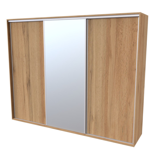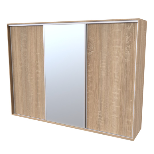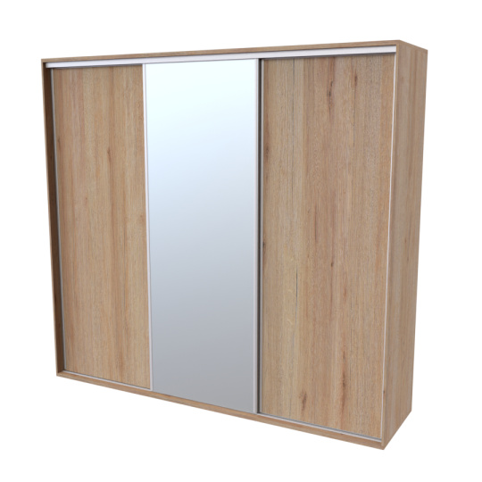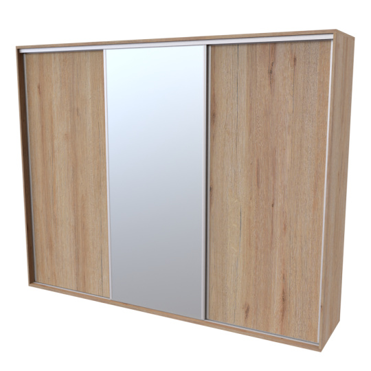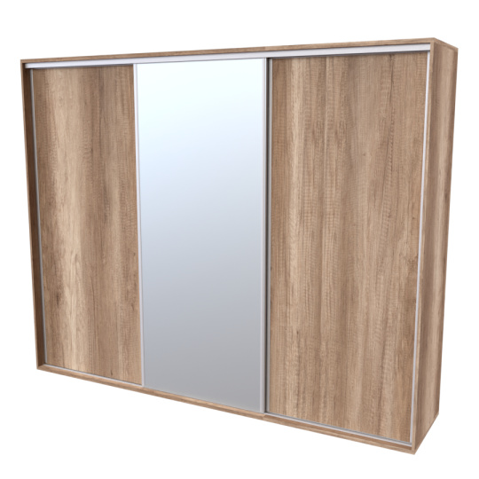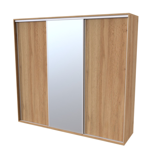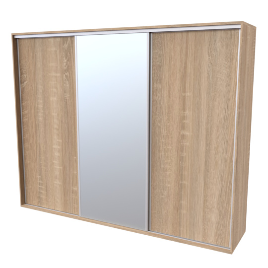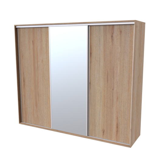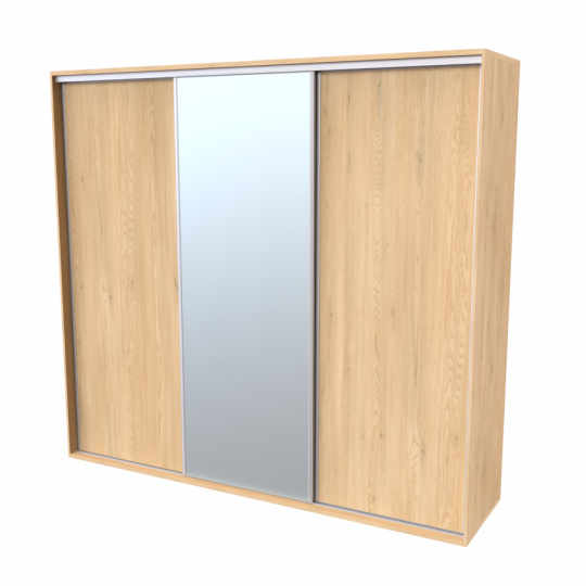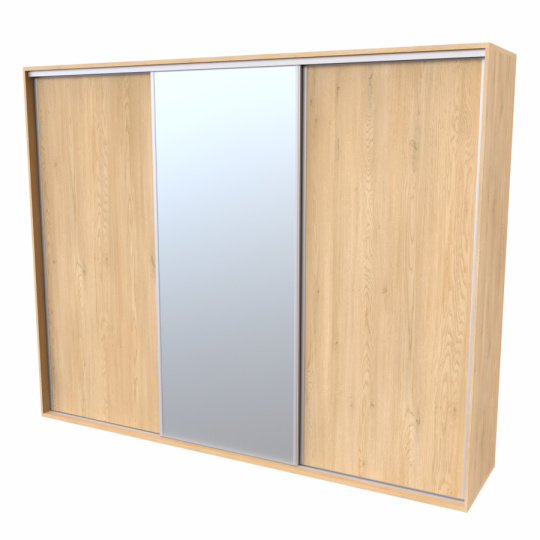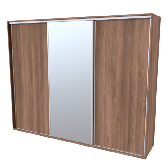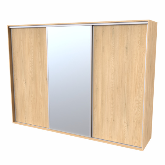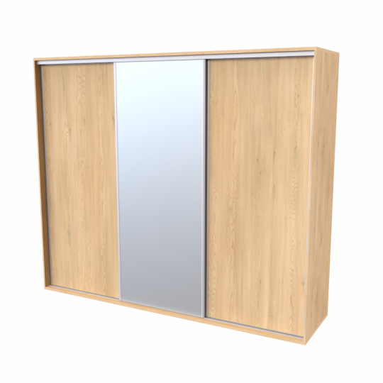 Řada skříní FLEXI 3 se vyznačuje svojí nadstandartní velikostí a úsporou místa díky posuvným dveřím. Snadné otvírání pomocí alu profilu s tlumícím kartáčem zaručuje tichý přístup nejen z levé a pravé strany (získáváte přístup i z prostřed skříně). Není tak potřeba úchytek. Skříně FLEXI nabízí možnost doplnění o zrcadlo, jenž opticky rozšíří Vaši ložnici, či o moderní kombinaci skla nebo druhého dekoru. Získáváte nespočet možností, jak skříň FLEXI zkombinovat, aby odpovídala co nejvíce Vašim představám. Vyrobeno z lamina o sílem 18/25 mm. Výběr z několika akčních dekorů. Kvalitní kování a spojovací materiál je bez použití plastových součástek, vyjma ochranných krytek. Výškově nastavitelné nohy pro dokonalé vyrovnání nepoškozují podlahu. Dvě varianty vnitřního uspořádání. Skříň je z výroby připravena na obě varianty, rozložení si volíte až při montáži. Hloubka skříní je 65 cm, možnost dveří s tlumením a dotahem. Praktické a efektní ABS hrany.
