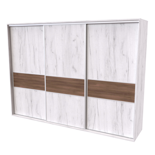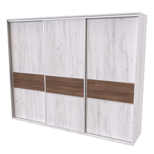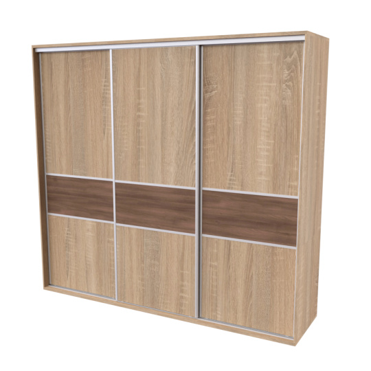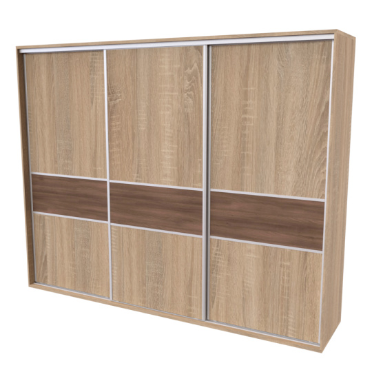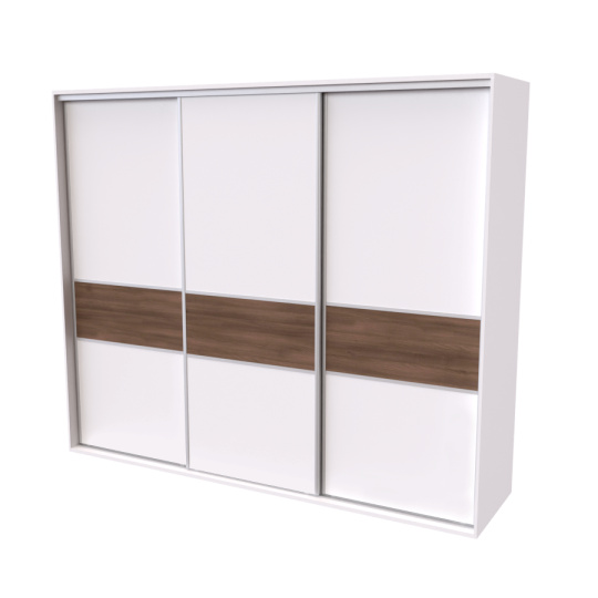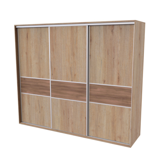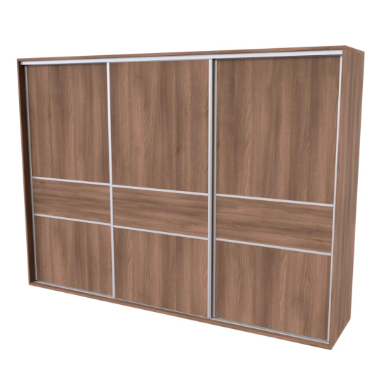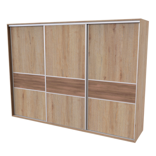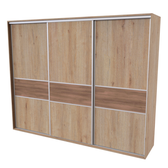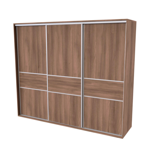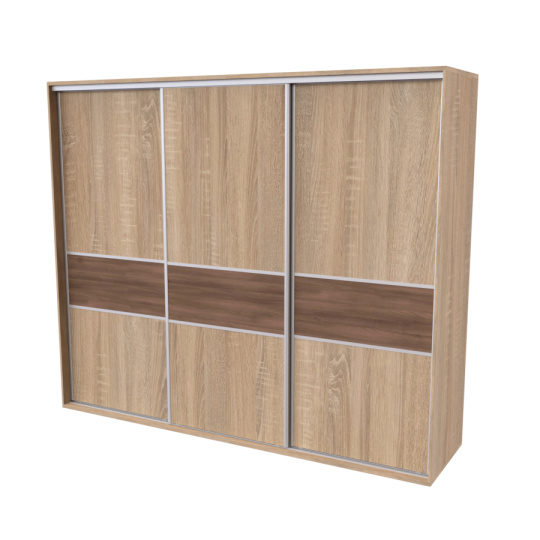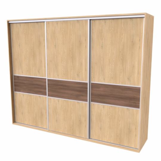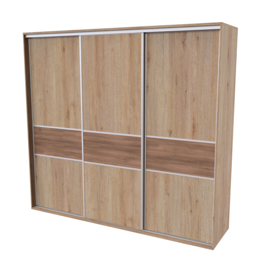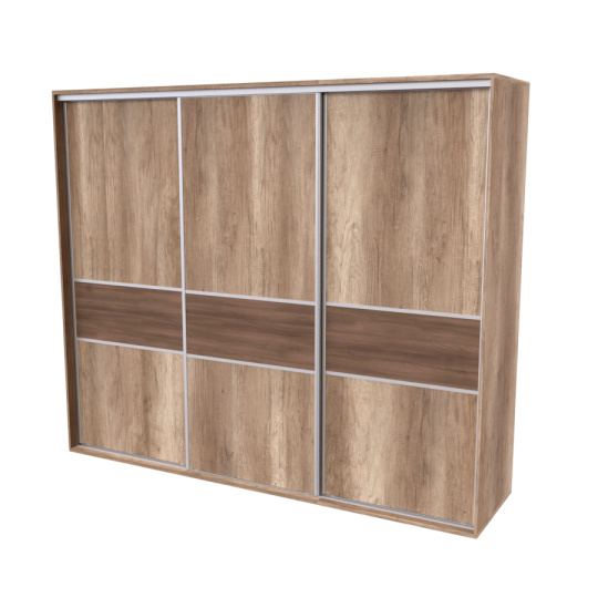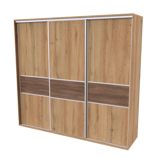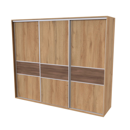 Řada skříní FLEXI 3 se vyznačuje svojí nadstandartní velikostí a úsporou místa díky posuvným dveřím. Snadné otvírání pomocí alu profilu s tlumícím kartáčem zaručuje tichý přístup nejen z levé a pravé strany (získáváte přístup i z prostřed skříně). Není tak potřeba úchytek. Skříně FLEXI nabízí možnost doplnění o zrcadlo, jenž opticky rozšíří Vaši ložnici, či o moderní kombinaci skla nebo druhého dekoru. Získáváte nespočet možností, jak skříň FLEXI zkombinovat, aby odpovídala co nejvíce Vašim představám. Vyrobeno z lamina o sílem 18/25 mm. Výběr z několika akčních dekorů. Kvalitní kování a spojovací materiál je bez použití plastových součástek, vyjma ochranných krytek. Výškově nastavitelné nohy pro dokonalé vyrovnání nepoškozují podlahu. Dvě varianty vnitřního uspořádání. Skříň je z výroby připravena na obě varianty, rozložení si volíte až při montáži. Hloubka skříní je 65 cm, možnost dveří s tlumením a dotahem. Praktické a efektní ABS hrany.