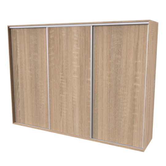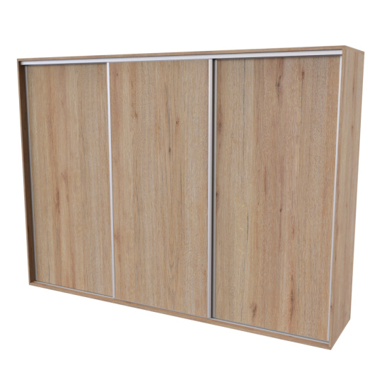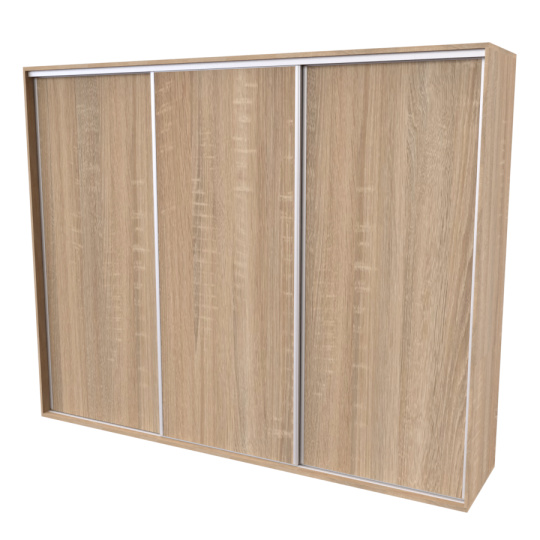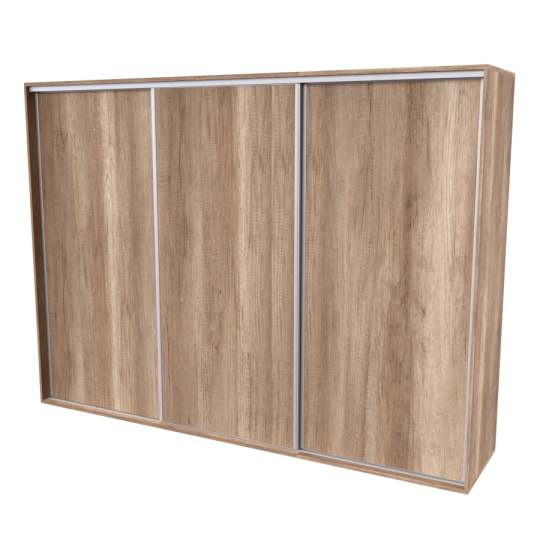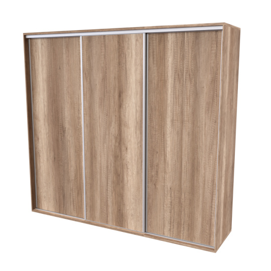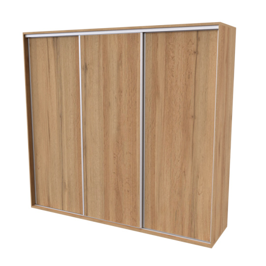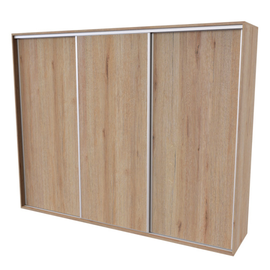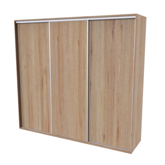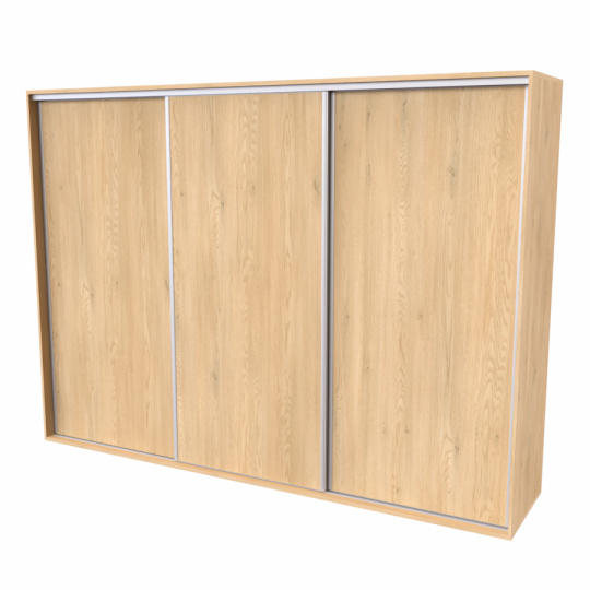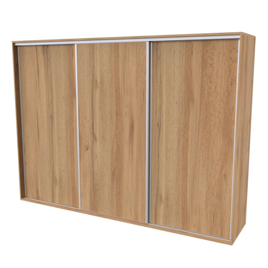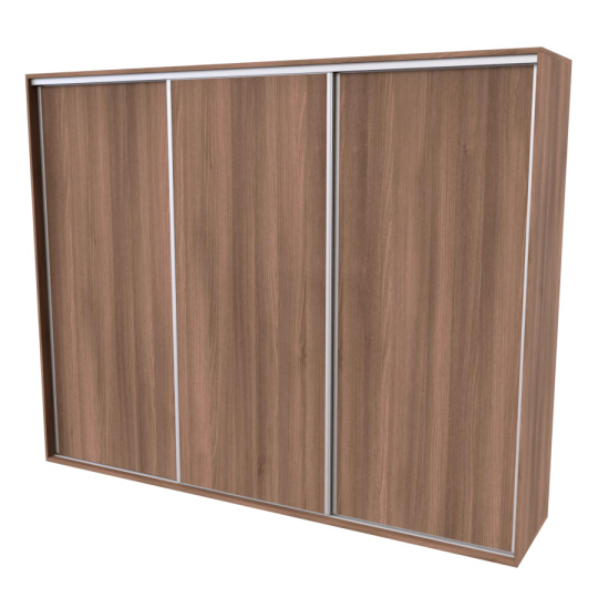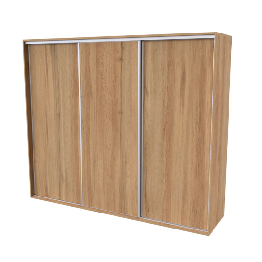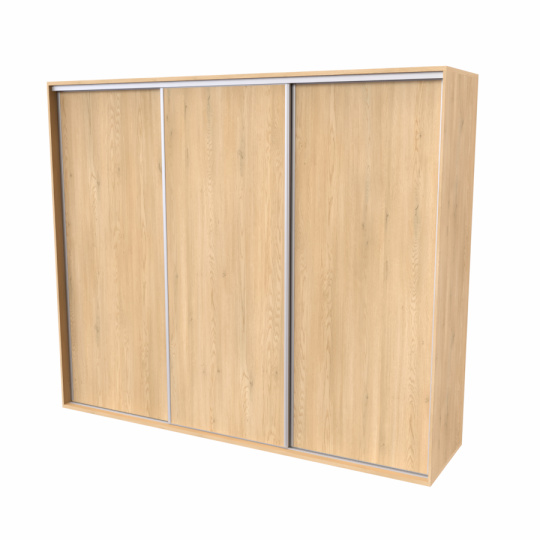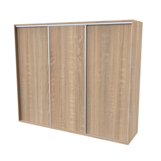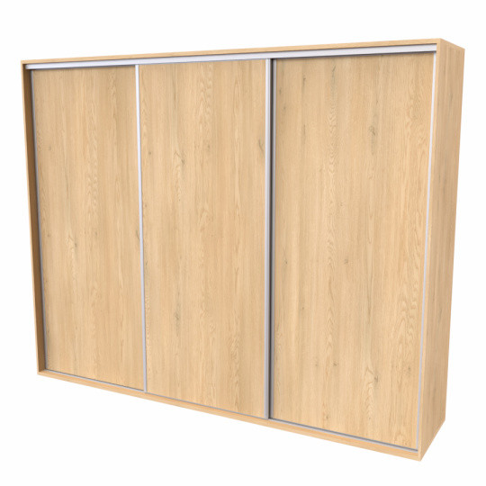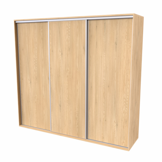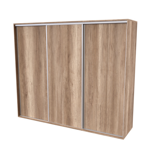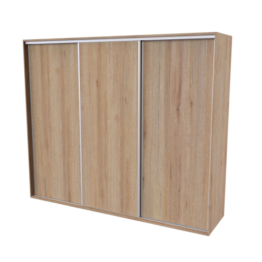 Řada skříní FLEXI 3 se vyznačuje svojí nadstandartní velikostí a úsporou místa díky posuvným dveřím. Snadné otvírání pomocí alu profilu s tlumícím kartáčem zaručuje tichý přístup nejen z levé a pravé strany (získáváte přístup i z prostřed skříně). Není tak potřeba úchytek. Skříně FLEXI nabízí možnost doplnění o zrcadlo, jenž opticky rozšíří Vaši ložnici, či o moderní kombinaci skla nebo druhého dekoru. Získáváte nespočet možností, jak skříň FLEXI zkombinovat, aby odpovídala co nejvíce Vašim představám. Vyrobeno z lamina o sílem 18/25 mm. Výběr z několika akčních dekorů. Kvalitní kování a spojovací materiál je bez použití plastových součástek, vyjma ochranných krytek. Výškově nastavitelné nohy pro dokonalé vyrovnání nepoškozují podlahu. Dvě varianty vnitřního uspořádání. Skříň je z výroby připravena na obě varianty, rozložení si volíte až při montáži. Hloubka skříní je 65 cm, možnost dveří s tlumením a dotahem. Praktické a efektní ABS hrany.