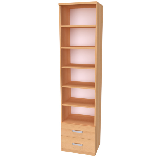 Moderní design a praktičnost - to je jen několik skvělých vlastností knihovny. Knihovna, která je pomocníkem pro vášnivé čtenáře i nadané studenty. Výběr akčních dekorů. Kvalitní kování a spojovací materiál je bez použití plastových součástek,vyjma ochranných krytek. Na zásuvkách je kovový mechanismus, díky němuž lze zásuvku vysunout celou. Vyrobeno z lamina o síle 18 / 25 mm