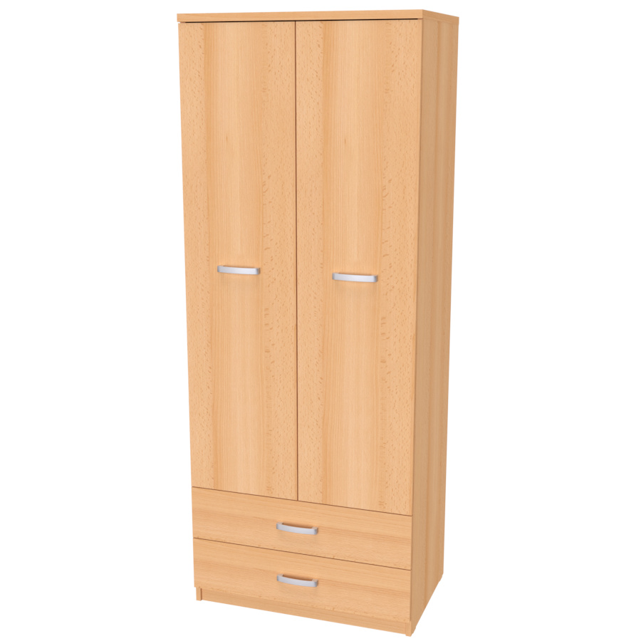 Elegantní, praktická šatní skříň se zásuvkami. Ideální do dětského / studentského pokoje. Výběr akčních dekorů. Kvalitní kování a spojovací materiál je bez použití plastových součástek,vyjma ochranných krytek. Na zásuvkách je kovový mechanismus, díky němuž lze zásuvku vysunout celou. Vyrobeno z lamina o síle 18 / 25 mm
