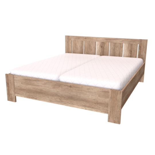 Toto dvoulůžko, v našem kvalitním provedení, najde své místo nejen v ložnici milovníků venkovského stylu, ale i zastánce moderny. Výplň čela v odlišném dekoru vytváří originální kombinaci barev, díky které se rozzáří celá Vaše ložnice. Čelo a nohy dvoulůžka jsou vyrobeny v síle lamina 25mm, bočnice 18 či 25mm. Výběr z několika akčních dekorů. Kvalitní kování a spojovací materiál je bez použití plastových součástek, vyjma ochranných krytek. Zvýšená lehací plocha 50 až 65 cm (včetně matrace o výšce 16 cm). Možnost volby roštu a matrace. Výškově nastavitelné kování do 8 poloh, lze tak rošt umístit do výšky od 32 do 43 cm dle typu matrace. Efektní a praktické ABS hrany. Značkové kování Hettich. Od šířky 120 cm kovová středová stabilizační noha.