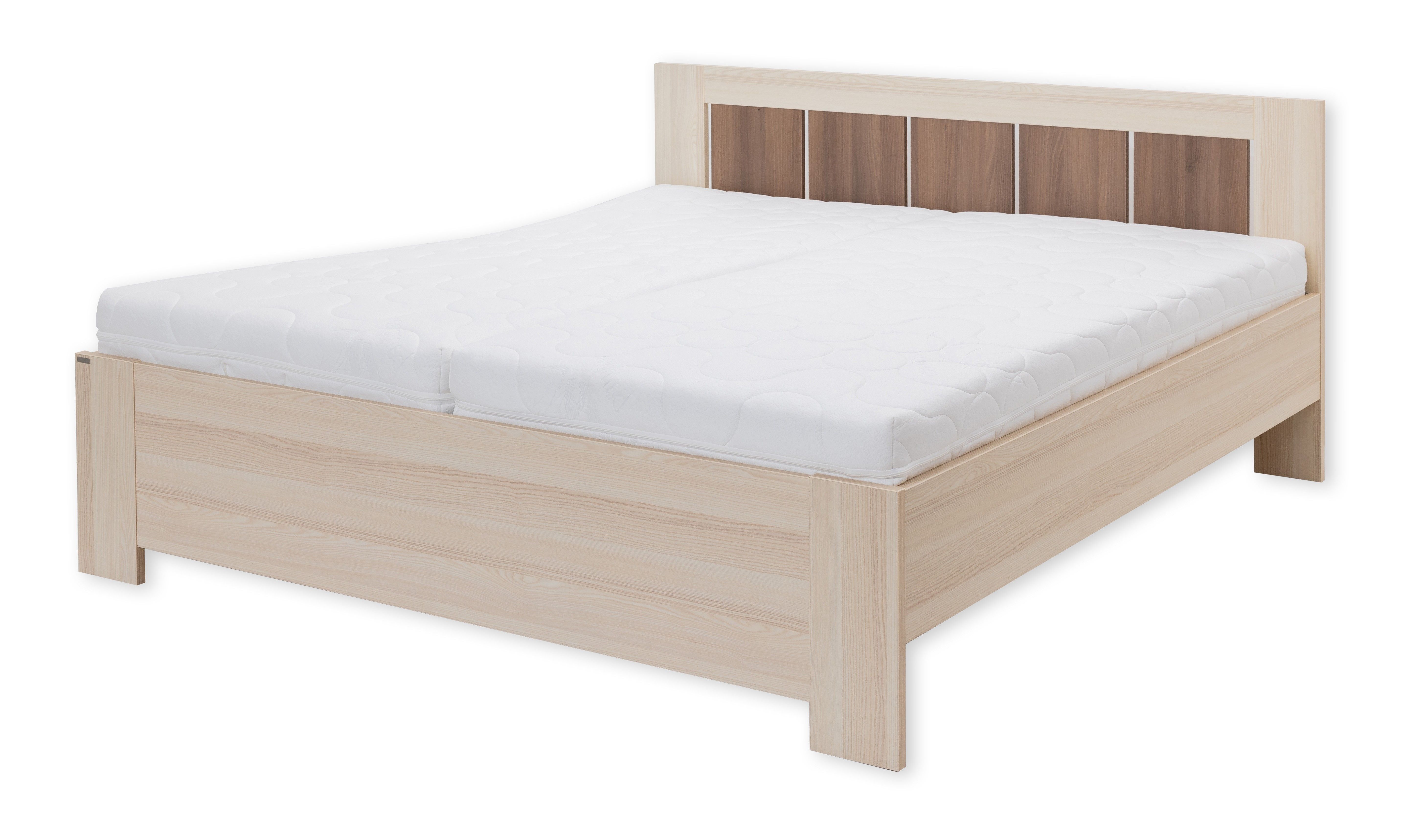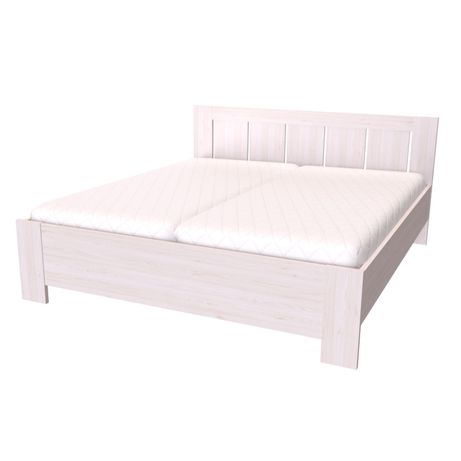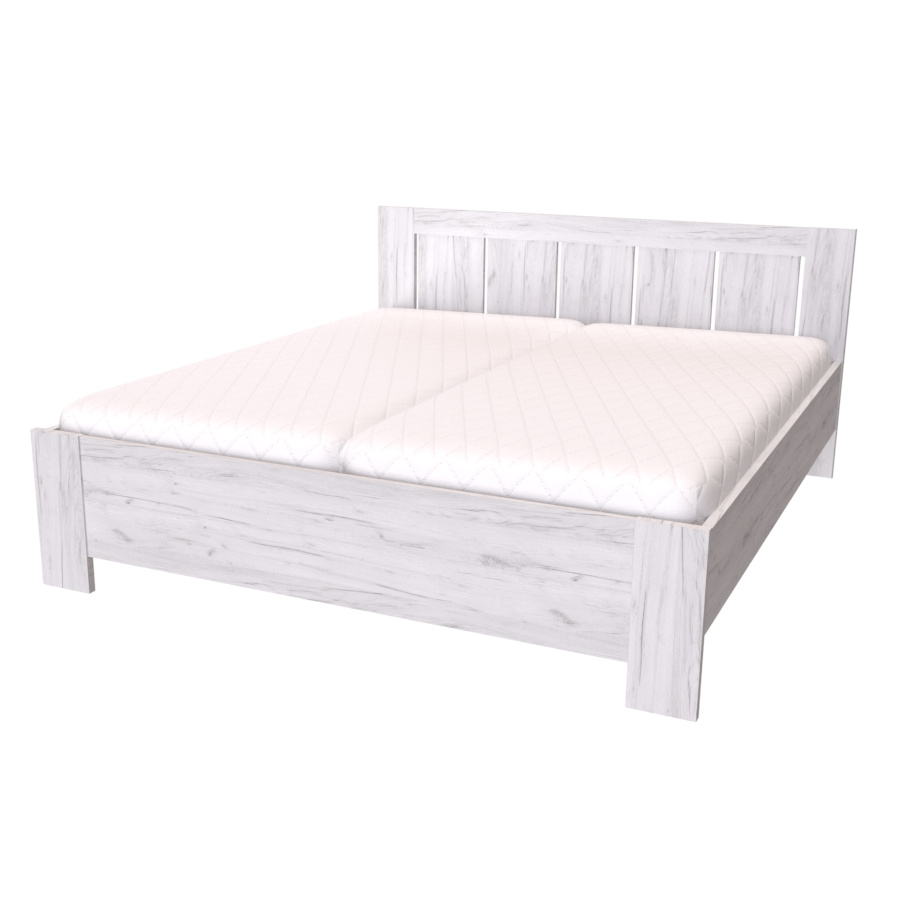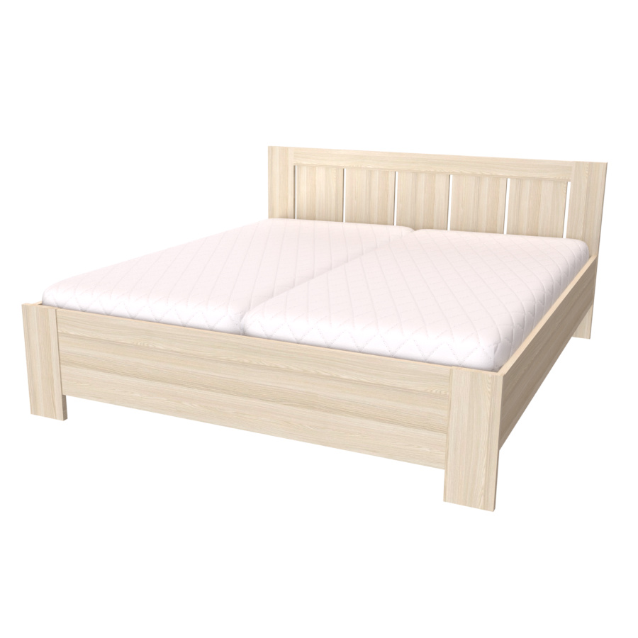 Toto dvoulůžko, v našem kvalitním provedení, najde své místo nejen v ložnici milovníků venkovského stylu, ale i zastánce moderny. Výplň čela v odlišném dekoru vytváří originální kombinaci barev, díky které se rozzáří celá Vaše ložnice. Čelo a nohy dvoulůžka jsou vyrobeny v síle lamina 25mm, bočnice 18 či 25mm. Výběr z několika akčních dekorů. Kvalitní kování a spojovací materiál je bez použití plastových součástek, vyjma ochranných krytek. Zvýšená lehací plocha 50 až 65 cm (včetně matrace o výšce 16 cm). Možnost volby roštu a matrace. Výškově nastavitelné kování do 8 poloh, lze tak rošt umístit do výšky od 32 do 43 cm dle typu matrace. Efektní a praktické ABS hrany. Značkové kování Hettich. Od šířky 120 cm kovová středová stabilizační noha.