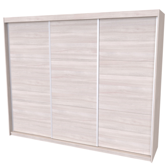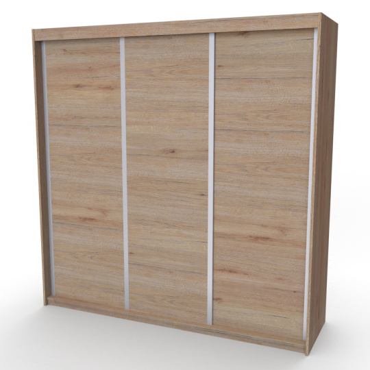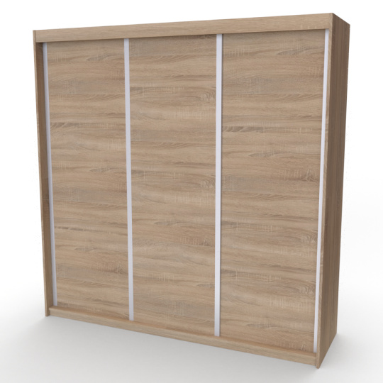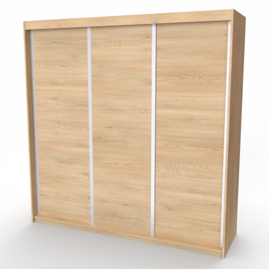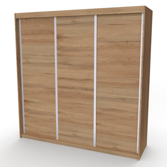 Vhodné do menších místností, kde rozhoduje každý centimetr Velká šatní skříň MAXIM 3 je vhodná do menších místností, kde rozhoduje každý centimetr. Moderní posuvné dveře vytvoří větší volný prostor kolem této skříně. Vyrobeno z lamina o síle 18mm. Výběr akčních dekorů. Kvalitní kování a spojovací materiál je bez použití plastových součástek, vyjma ochranných krytek. Dvě varianty vnitřního uspořádání. Skříň je z výroby připravena na obě varianty, rozložení si volíte až při montáži. Posuvné dveře s tlumením a dotahem. Dveře se skládají ze tří dílů, což nabízí možnost kombinace dekorů. Lze také osadit zrcadlem.