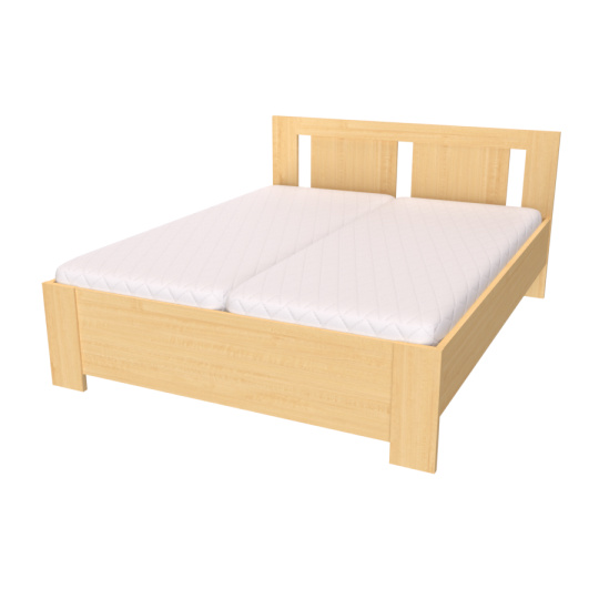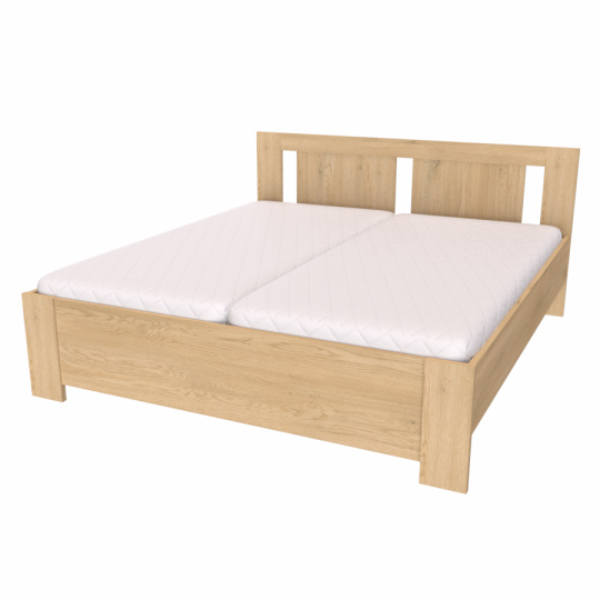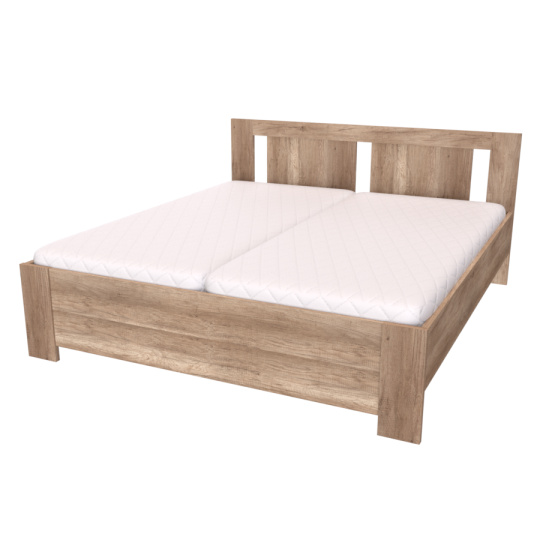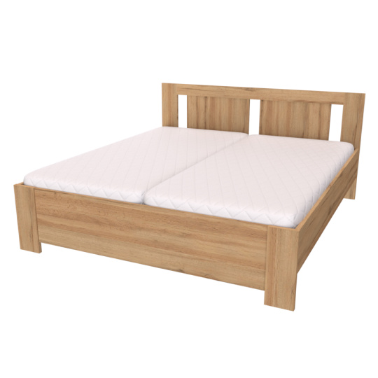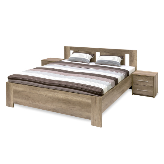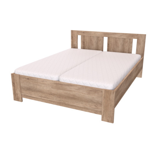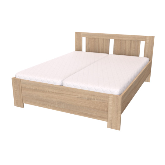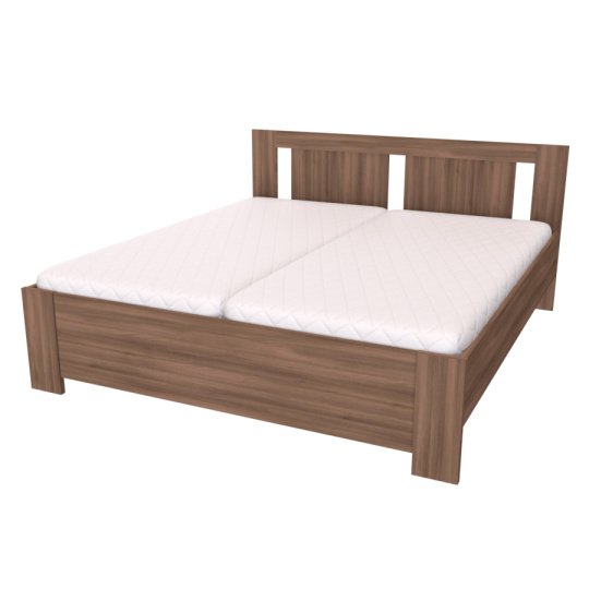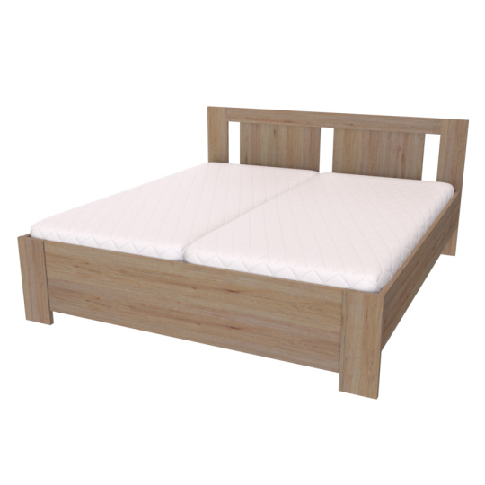 Oblíbené dvoulůžko, které poskytuje zdravý spánek našich zákazníků. Rustikální dvoulůžko s otvory v čele, které dávají možnost odvětrávání přilehlé zdi. Možnost doplnění o výsuvný úložný prostor (zásuvka 3/4). Čelo a nohy dvoulůžka jsou vyrobeny v síle lamina 25mm, bočnice 18 či 25mm. Výběr z několika akčních dekorů. Kvalitní kování a spojovací materiál je bez použití plastových součástek, vyjma ochranných krytek. Zvýšená lehací plocha 50 až 65 cm (včetně matrace o výšce 16 cm). Možnost volby roštu a matrace. Výškově nastavitelné kování do 8 poloh, lze tak rošt umístit do výšky od 32 do 43 cm dle typu matrace. Efektní a praktické ABS hrany. Značkové kování Hettich. Od šířky 120 cm kovová středová stabilizační noha.