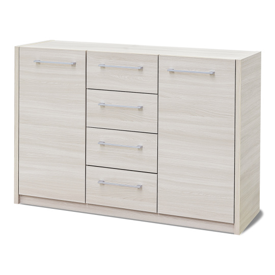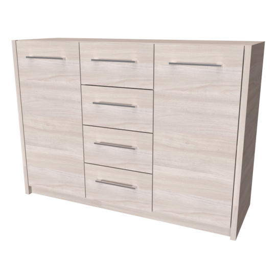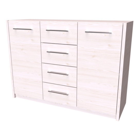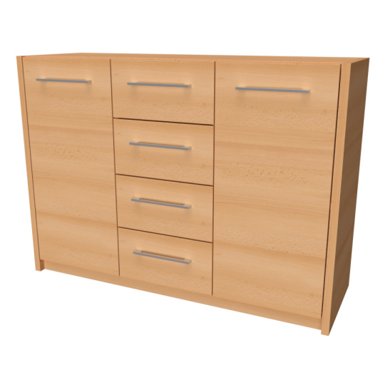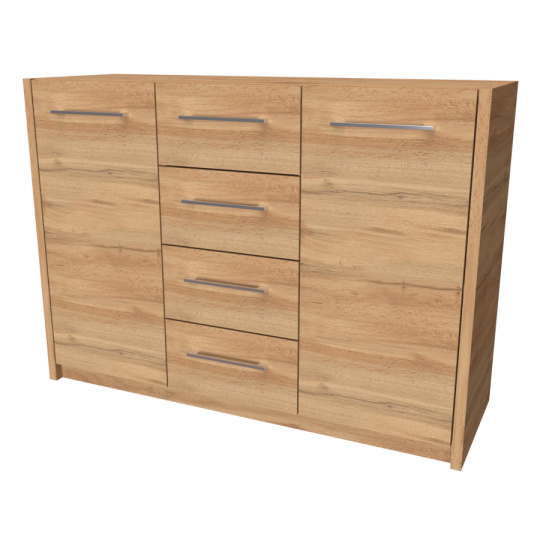 Komoda v klasickém stylu, vhodná i do menších prostor. Využití najde jak v ložnici, tak i v dětském pokoji či předsíni. Kvalitní zásuvky, úchytky a pojezdy jsou přizpůsobeny častému otevírání. Vyrobeno z lamina o síle 18mm Výběr akčních dekorů. Kvalitní kování a spojovací materiál je bez použití plastových součástek,vyjma ochranných krytek.
