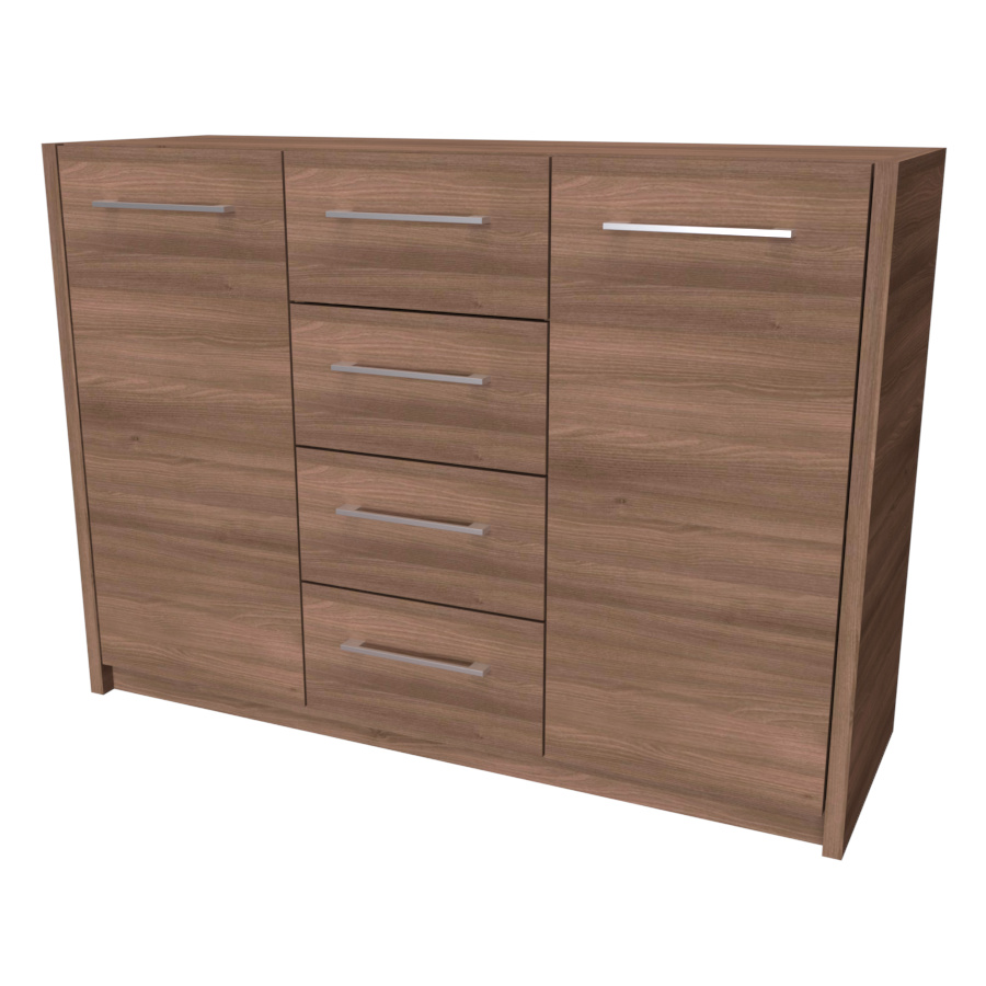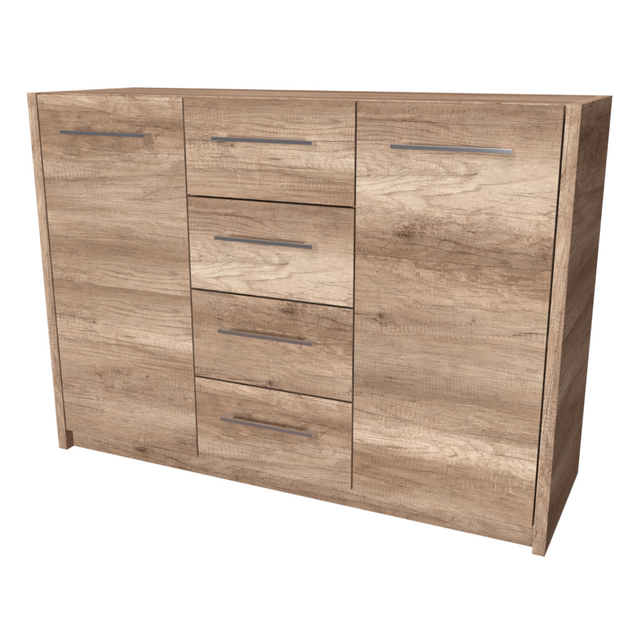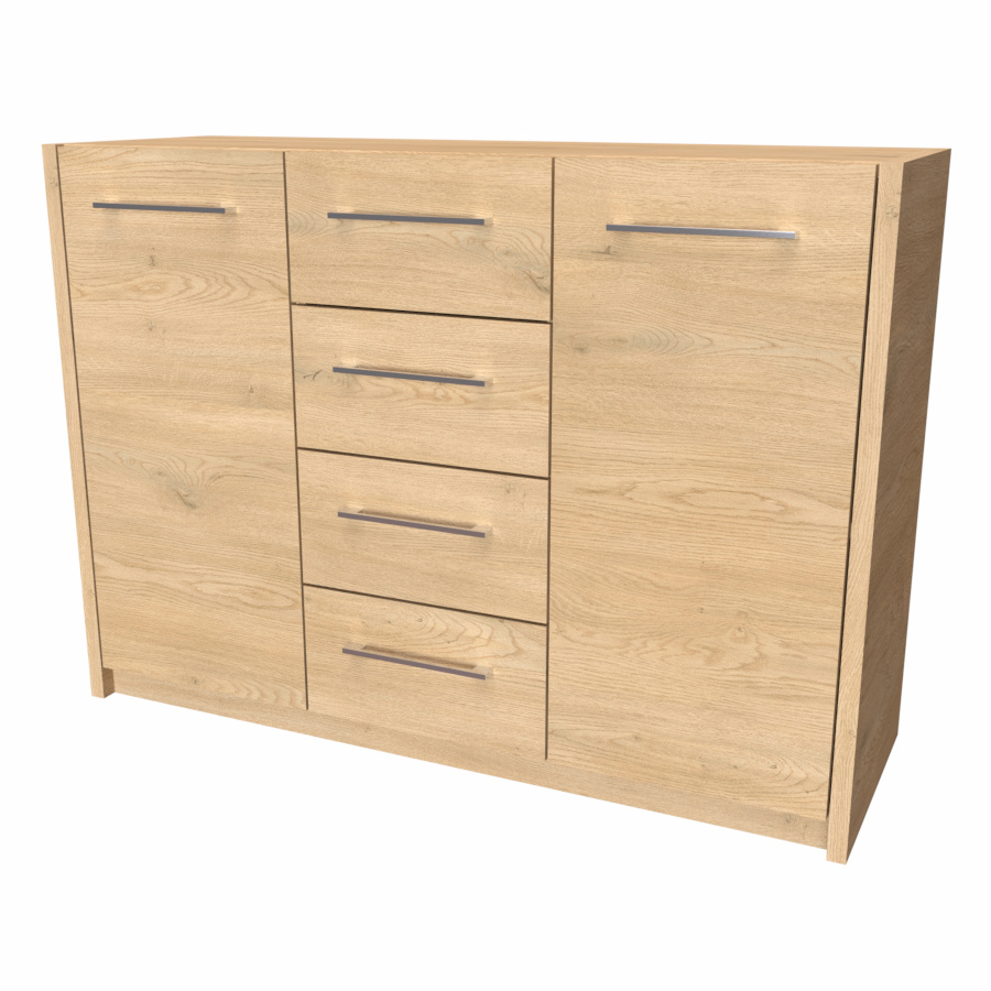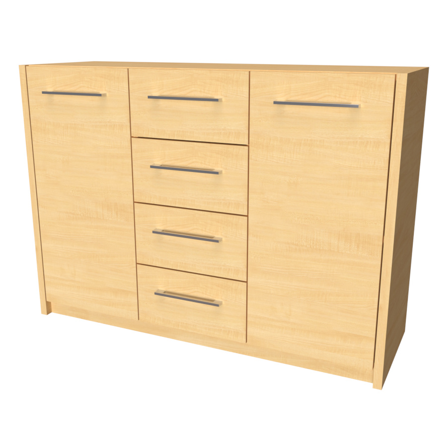 Komoda v klasickém stylu, vhodná i do menších prostor. Využití najde jak v ložnici, tak i v dětském pokoji či předsíni. Kvalitní zásuvky, úchytky a pojezdy jsou přizpůsobeny častému otevírání. Vyrobeno z lamina o síle 18mm Výběr akčních dekorů. Kvalitní kování a spojovací materiál je bez použití plastových součástek,vyjma ochranných krytek.