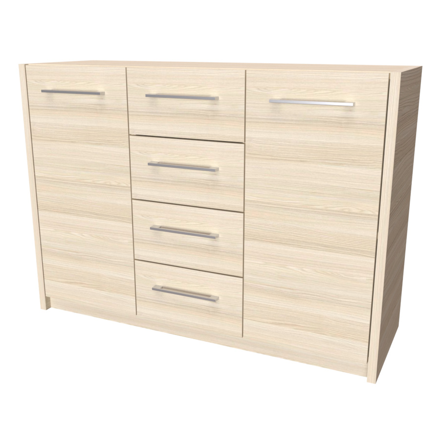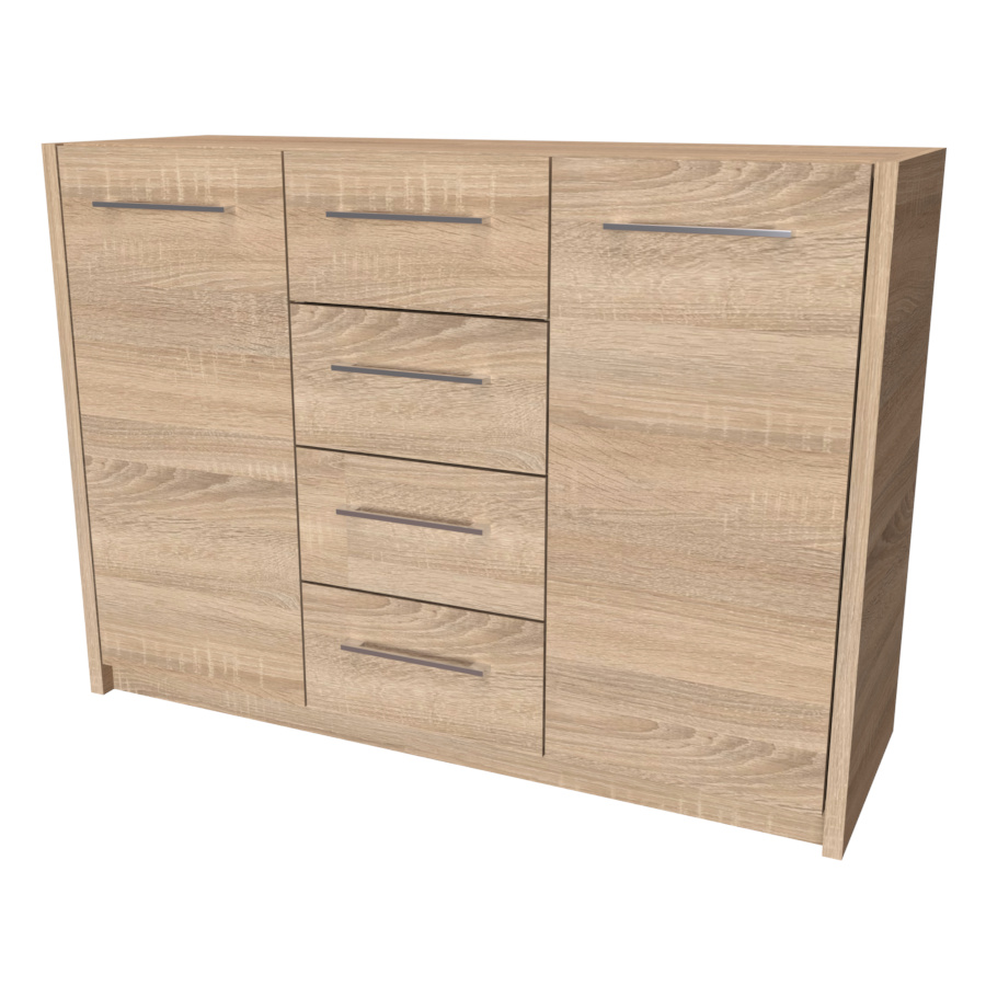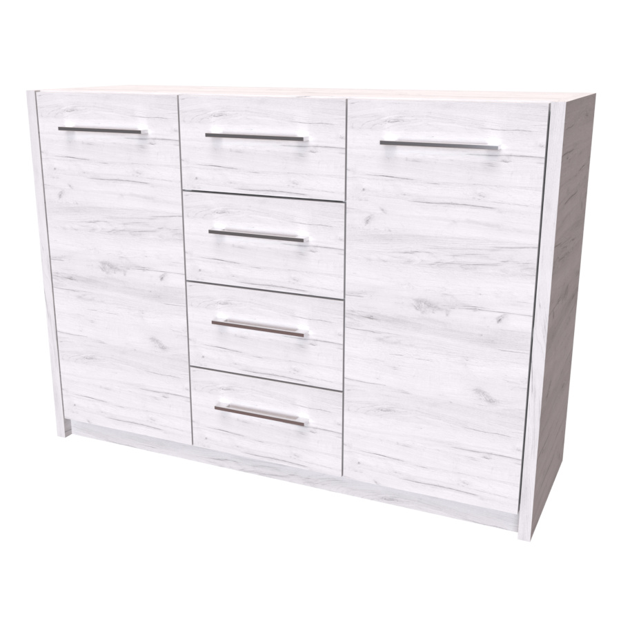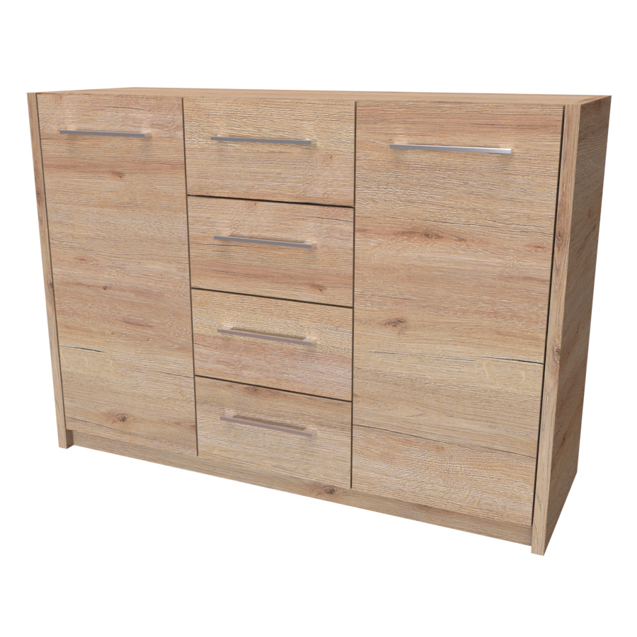 Komoda v klasickém stylu, vhodná i do menších prostor. Využití najde jak v ložnici, tak i v dětském pokoji či předsíni. Kvalitní zásuvky, úchytky a pojezdy jsou přizpůsobeny častému otevírání. Vyrobeno z lamina o síle 18mm Výběr akčních dekorů. Kvalitní kování a spojovací materiál je bez použití plastových součástek,vyjma ochranných krytek.