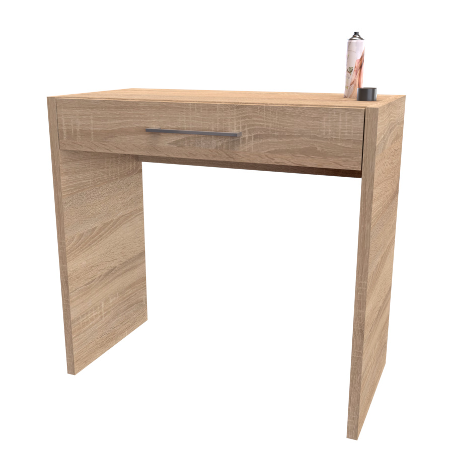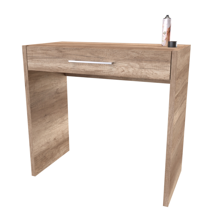 Toaletní stolek, který nabízí ideální prostor nejen pro kosmetické potřeby. Vyrobeno z lamina o síle 18 či 25mm Výběr z akčních dekorů. Kvalitní kování a spojovací materiál je bez použití plastových součástek,vyjma ochranných krytek.