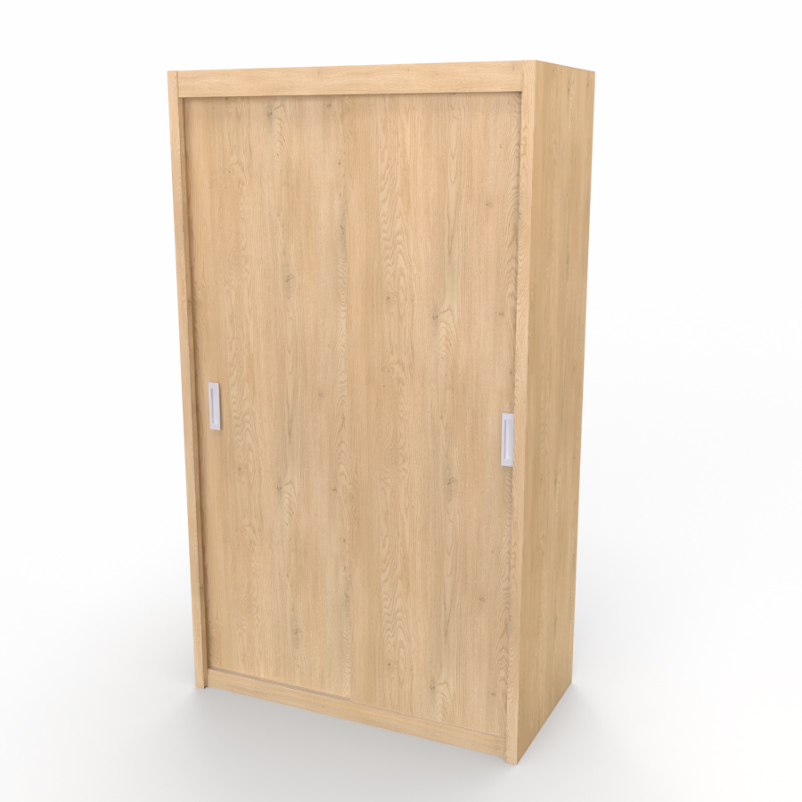 Skříň v moderním provedení s posuvnými dveřmi, které šetří prostor. Vyrobeno z lamina o síle 18mm. Výběr akčních dekorů. Kvalitní kování a spojovací materiál je bez použití plastových součástek,vyjma ochranných krytek. Posuvné dveře s tlumením a dotahem. Nastavitelné nožky uvnitř skříně pro snadné vyrovnání. Skříň má efektní a praktické ABS hrany. Lze osadit zrcadlem. Dvě varianty vnitřního uspořádání. Skříň je z výroby připravena na obě varianty, rozložení si volíte až při montáži.