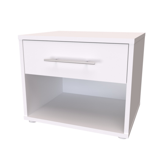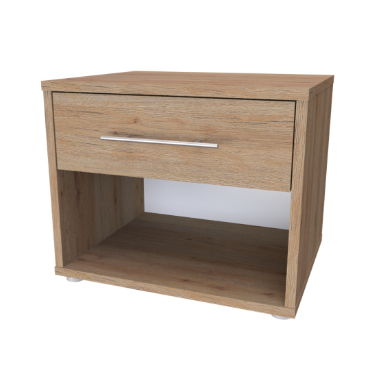 Jednozásuvkový stolek s otevřeným prostorem. Díky kvalitnímu podložení nepoškozuje podlahu a vytváří odvětrávací meziprostor od země. Noční stolek MONTY (půda 18mm) je vyroben z lamina o síle 18 mm. Výběr z několika akčních dekorů. Kvalitní kování a spojovací materiál je bez použití plastových součástek, vyjma ochranných krytek. Zásuvky s 3D skrytými plnovýsuvy, snadné nastavení ve 3 směrech tak, aby zásuvka perfektně zapadla na místo a snadno vyjížděla. S tlumením s dotahem. Efektní a praktické ABS hrany.