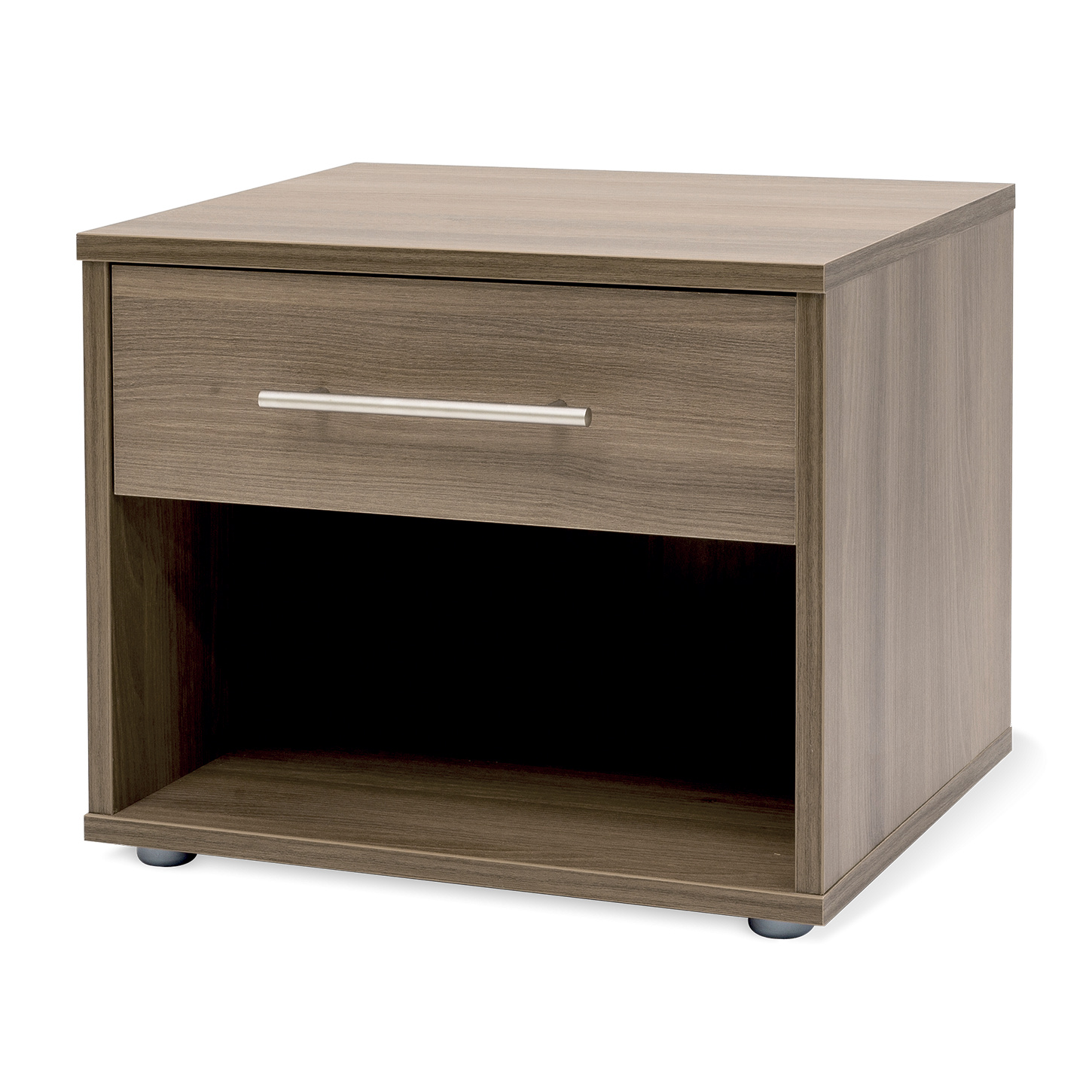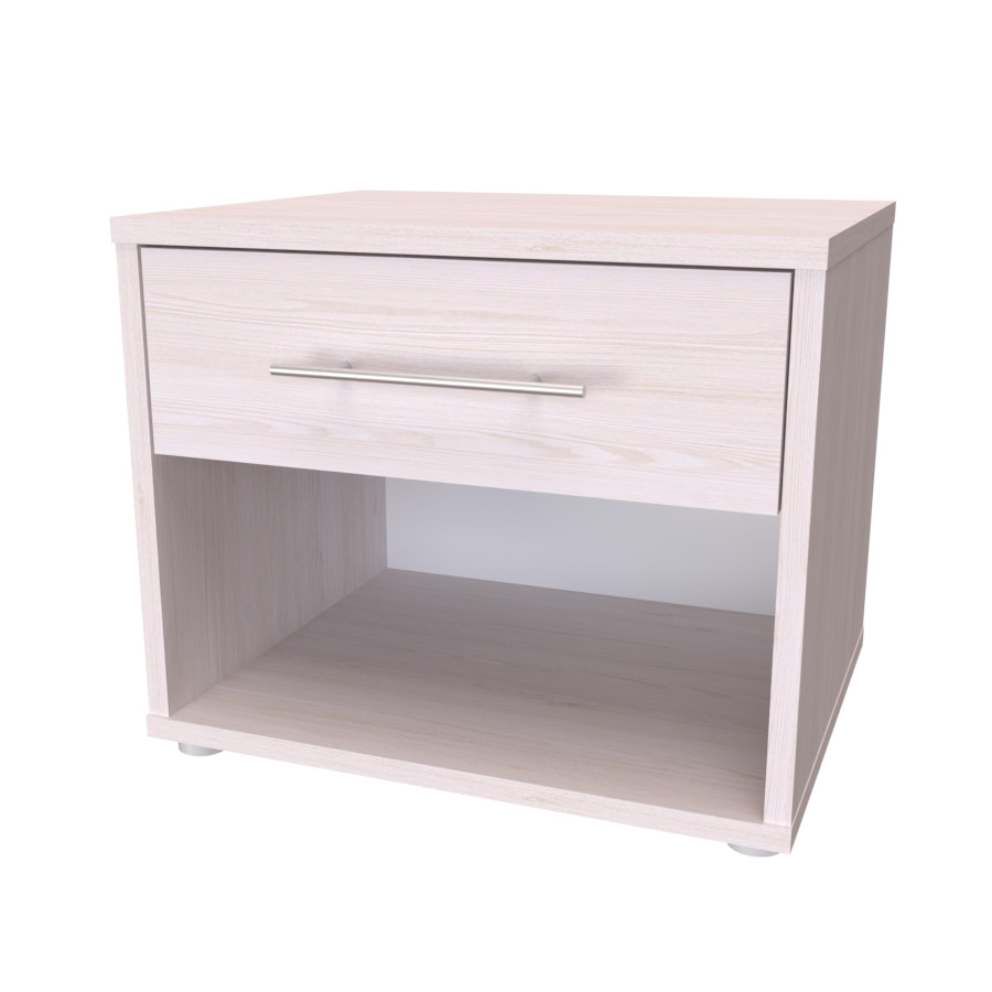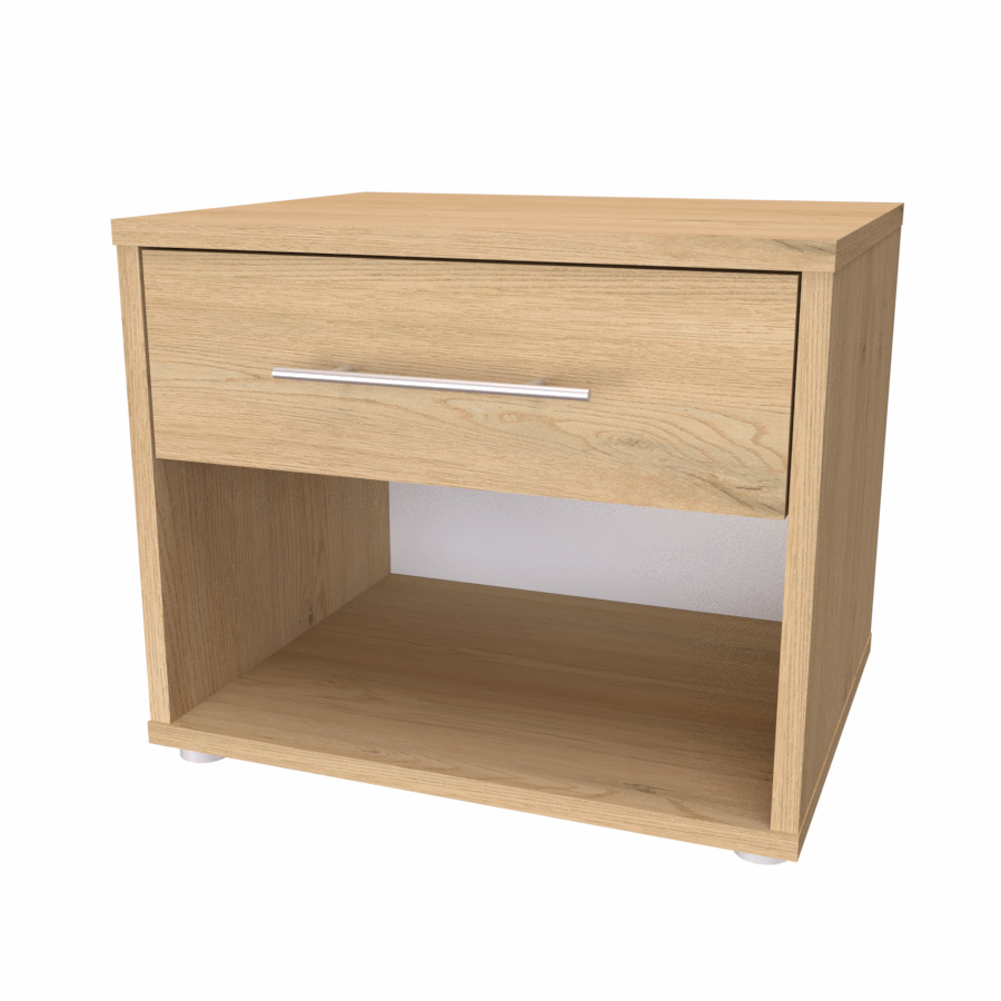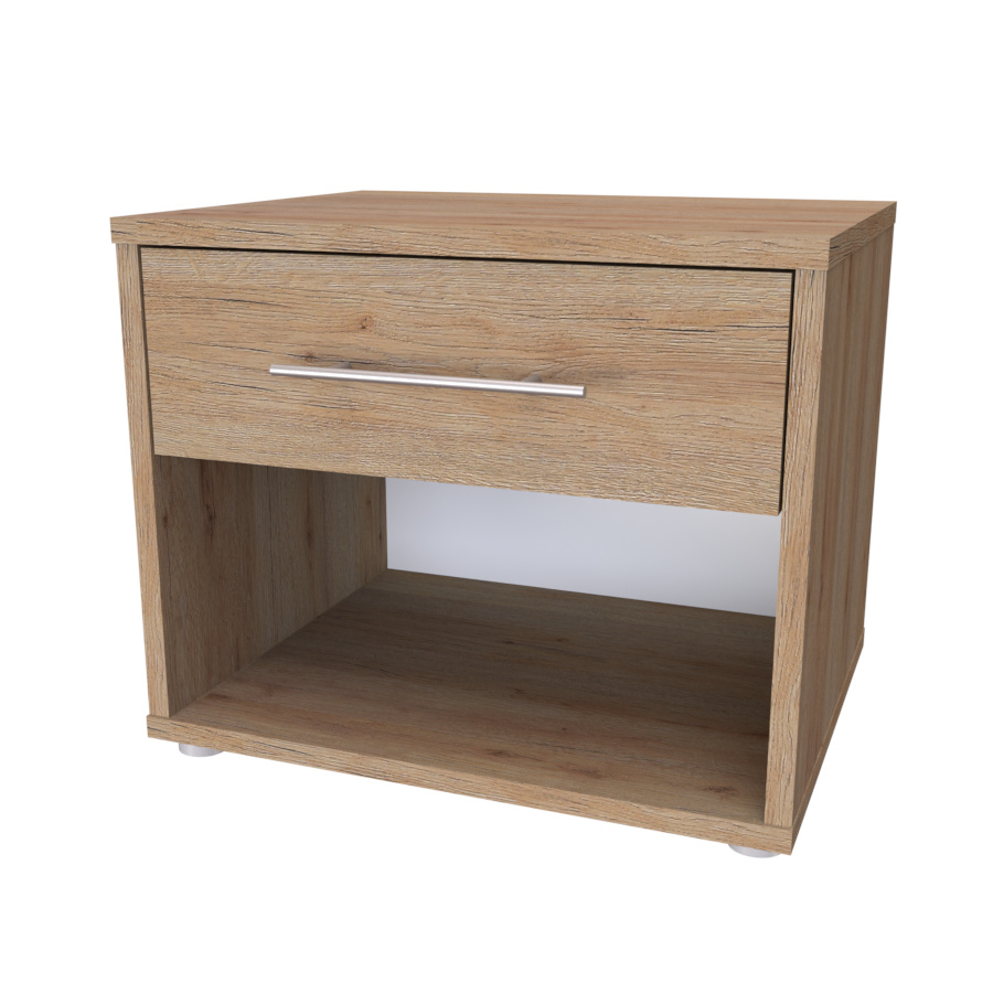 Jednozásuvkový stolek s otevřeným prostorem. Díky kvalitnímu podložení nepoškozuje podlahu a vytváří odvětrávací meziprostor od země. Noční stolek MONTY (půda 18mm) je vyroben z lamina o síle 18 mm. Výběr z několika akčních dekorů. Kvalitní kování a spojovací materiál je bez použití plastových součástek, vyjma ochranných krytek. Zásuvky s 3D skrytými plnovýsuvy, snadné nastavení ve 3 směrech tak, aby zásuvka perfektně zapadla na místo a snadno vyjížděla. S tlumením s dotahem. Efektní a praktické ABS hrany.