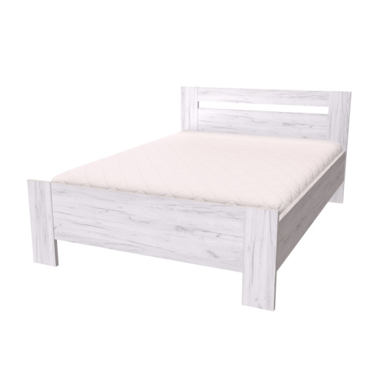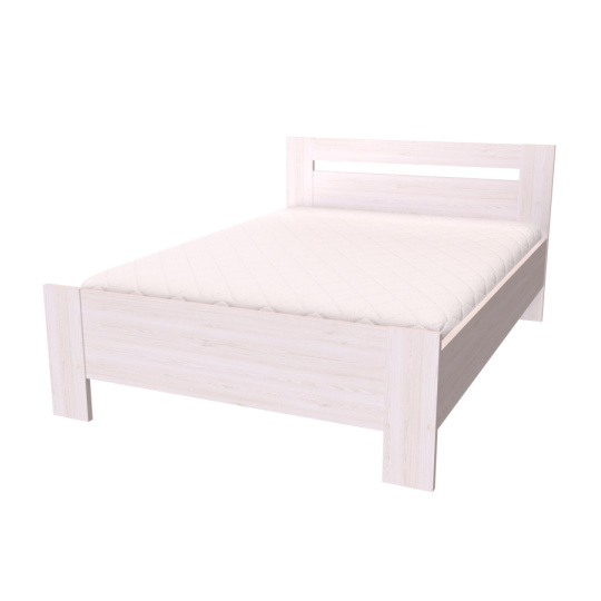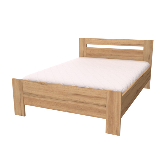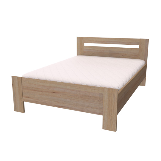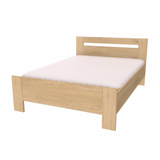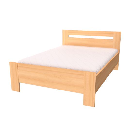 Inovativní design tohoto lůžka padne do vkusu především milovníkům moderního stylu bydlení. Jednou z výhod je volný prostor pod postelí a čelo v příjemné výšce. To vše zaručuje zdravý a klidný spánek našich zákazníků. Čelo a nohy dvoulůžka jsou vyrobeny v síle lamina 25mm, bočnice 18 či 25mm. Výběr z několika akčních dekorů. Kvalitní kování a spojovací materiál je bez použití plastových součástek, vyjma ochranných krytek. Zvýšená lehací plocha 50 až 65 cm (včetně matrace o výšce 16 cm). Možnost volby roštu a matrace. Výškově nastavitelné kování do 8 poloh, lze tak rošt umístit do výšky od 32 do 43 cm dle typu matrace. Efektní a praktické ABS hrany. Značkové kování Hettich. Od šířky 120 cm kovová středová stabilizační noha.