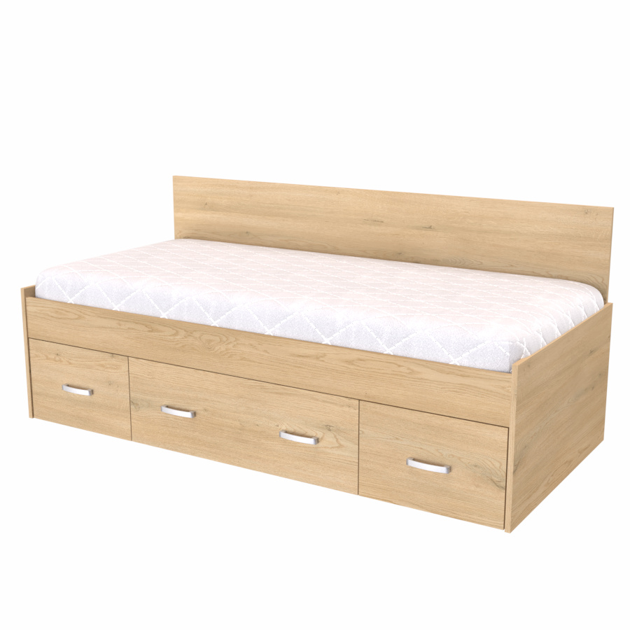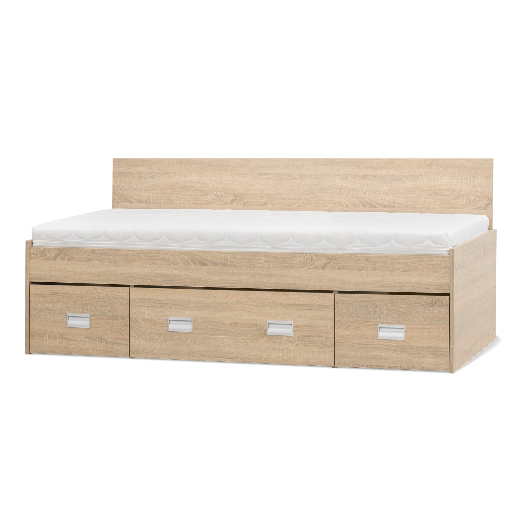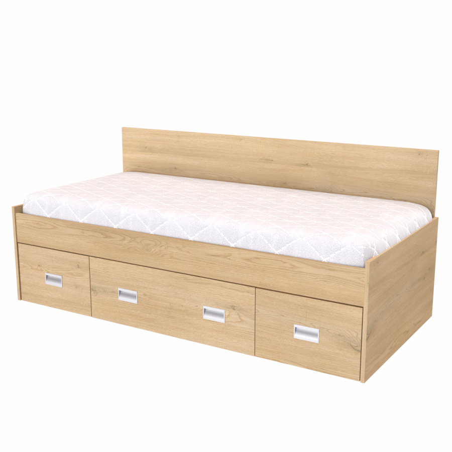 • Jednolůžková postel 90×200 cm, která spojuje komfort, praktičnost a chytré detaily.