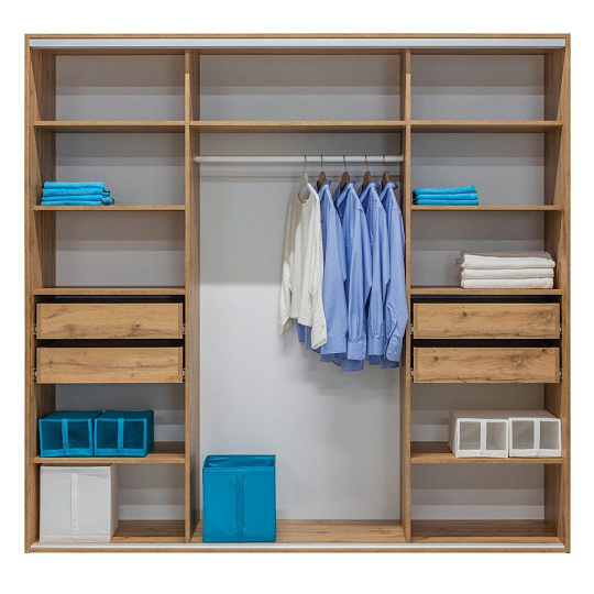 • Výška 240 cm – 10 polic, 1 šatní tyč, 4 zásuvky