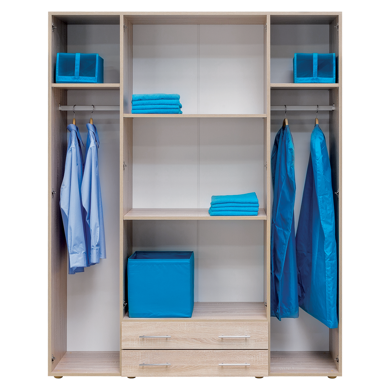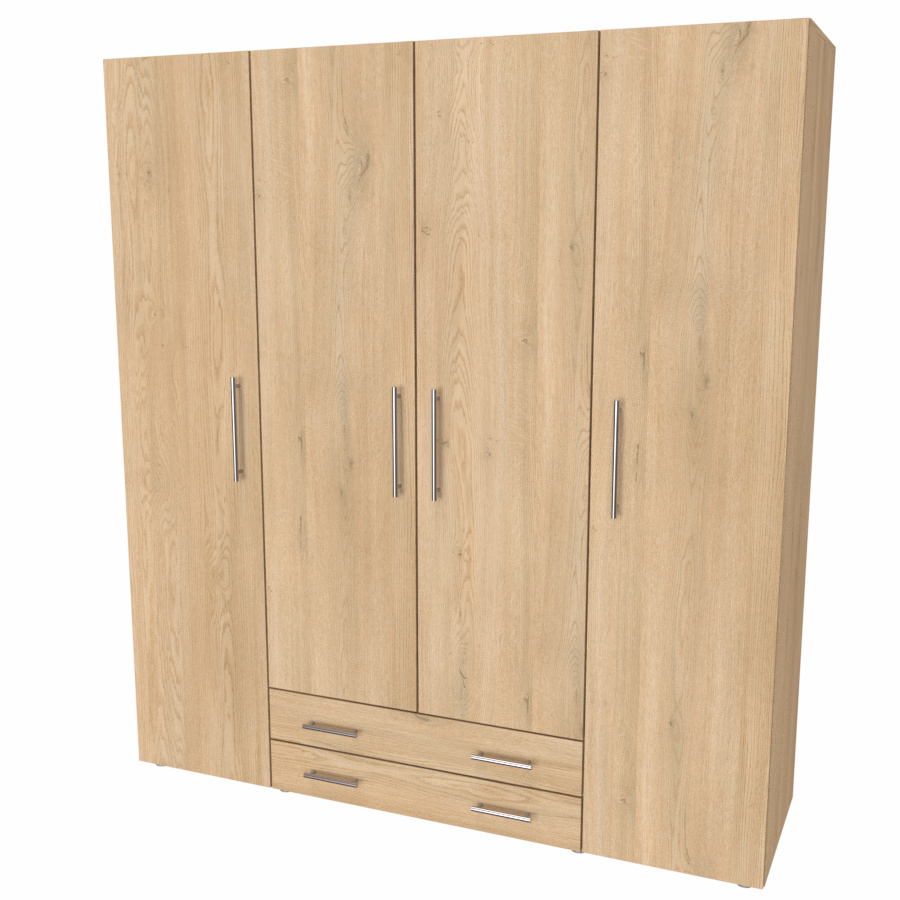 Skříň s vysokými policemi. Výška výrobku zaručuje maximální využití prostoru. Efektivní vnitřní uspořádání polic. Klasický, přesto stále moderní styl pro všechny generace. Vyrobeno z lamina o síle 18mm. Výběr akčních dekorů. Kvalitní kování a spojovací materiál je bez použití plastových součástek,vyjma ochranných krytek. Výška nožek od země je 2 cm, nožičky jsou nastavitelné, maximální výška je 3 cm.