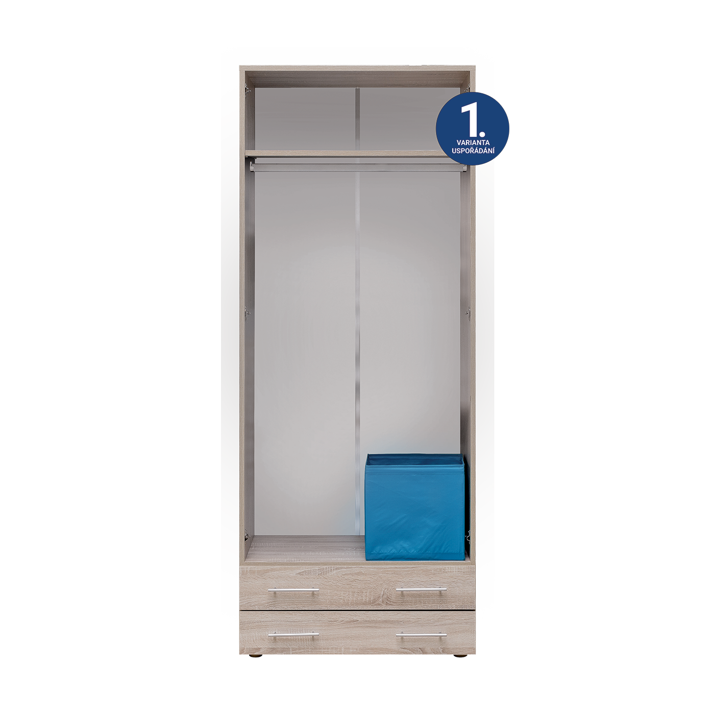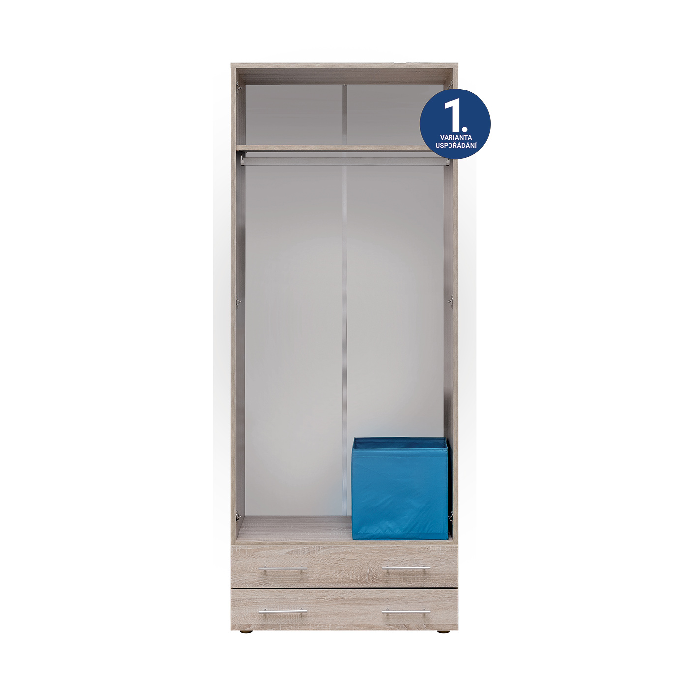 Skříň s vysokými policemi. Výška výrobku zaručuje maximální využití prostoru. Efektivní vnitřní uspořádání polic. Klasický, přesto stále moderní styl pro všechny generace. Vyrobeno z lamina o síle 18mm. Výběr akčních dekorů. Kvalitní kování a spojovací materiál je bez použití plastových součástek,vyjma ochranných krytek. Výška nožek od země je 2 cm, nožičky jsou nastavitelné, maximální výška je 3 cm.