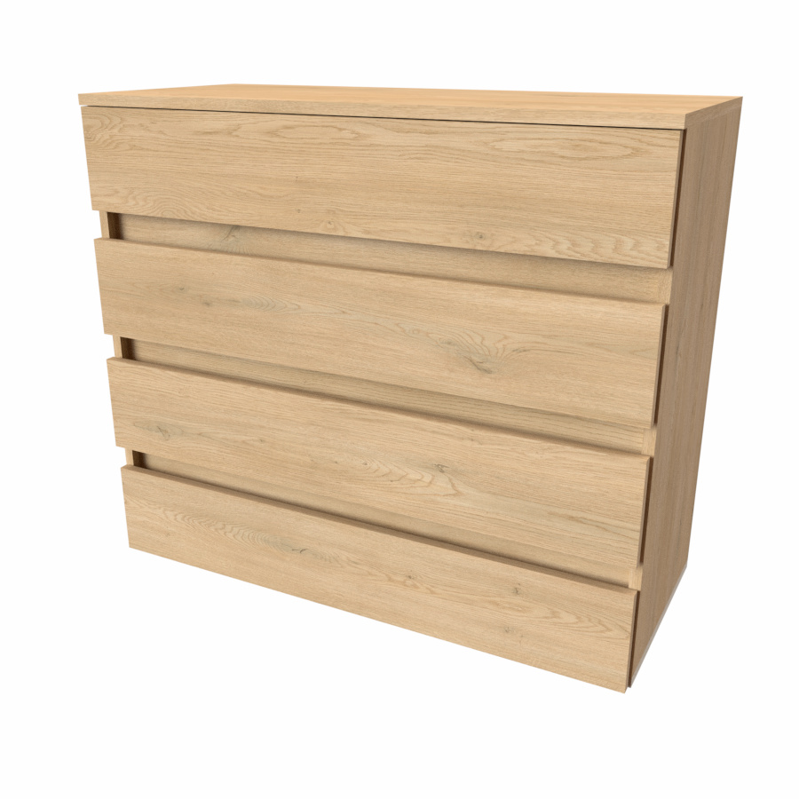 Moderní bezúchytová komoda v atraktivním designu, jenž najde své využití v jakékoli místnosti. Vyrobeno z lamina o síle 18mm. Kvalitní zásuvky, úchytky a pojezdy jsou přizpůsobeny častému otevírání. Výběr akčních dekorů. Kvalitní kování a spojovací materiál je bez použití plastových součástek,vyjma ochranných krytek.