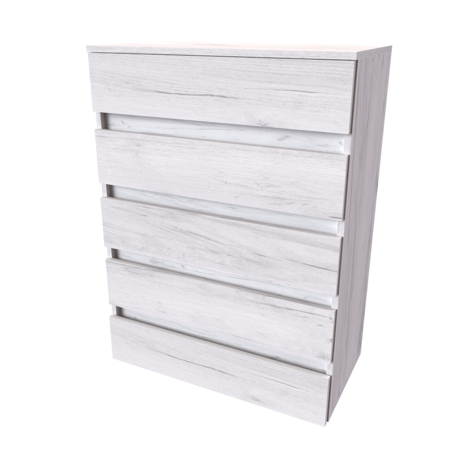 Moderní bezúchytová komoda v atraktivním designu, jenž najde své využití v jakékoli místnosti. Vyrobeno z lamina o síle 18mm. Kvalitní zásuvky, úchytky a pojezdy jsou přizpůsobeny častému otevírání. Výběr akčních dekorů. Kvalitní kování a spojovací materiál je bez použití plastových součástek,vyjma ochranných krytek.