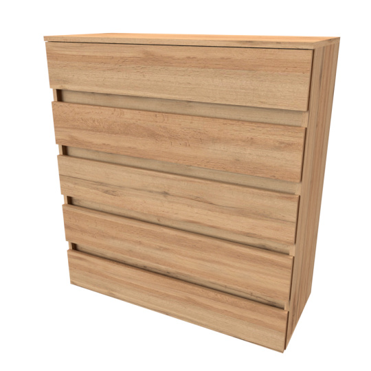 Moderní bezúchytová komoda v atraktivním designu, jenž najde své využití v jakékoli místnosti. Vyrobeno z lamina o síle 18mm. Kvalitní zásuvky, úchytky a pojezdy jsou přizpůsobeny častému otevírání. Výběr akčních dekorů. Kvalitní kování a spojovací materiál je bez použití plastových součástek,vyjma ochranných krytek.