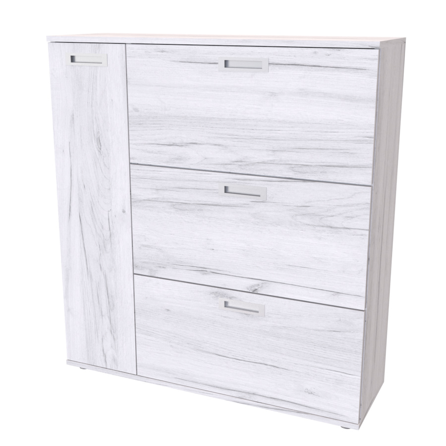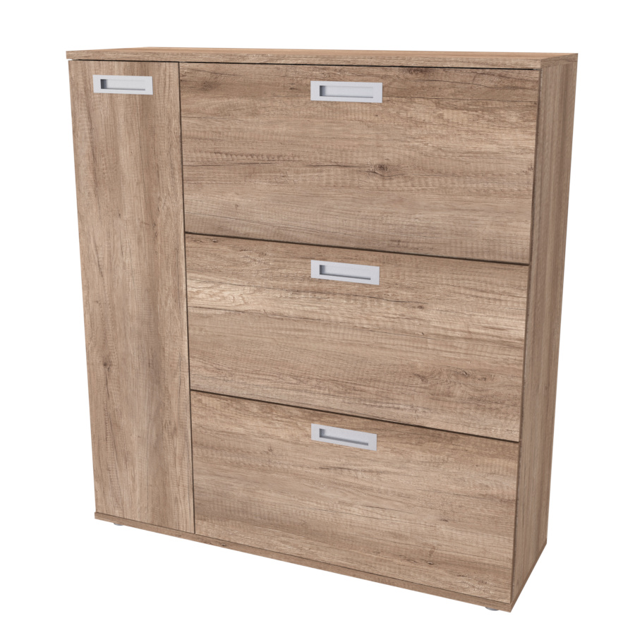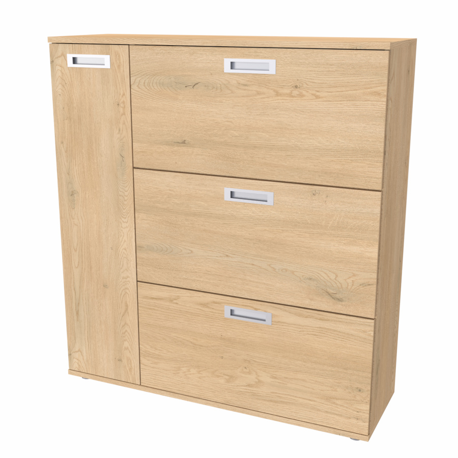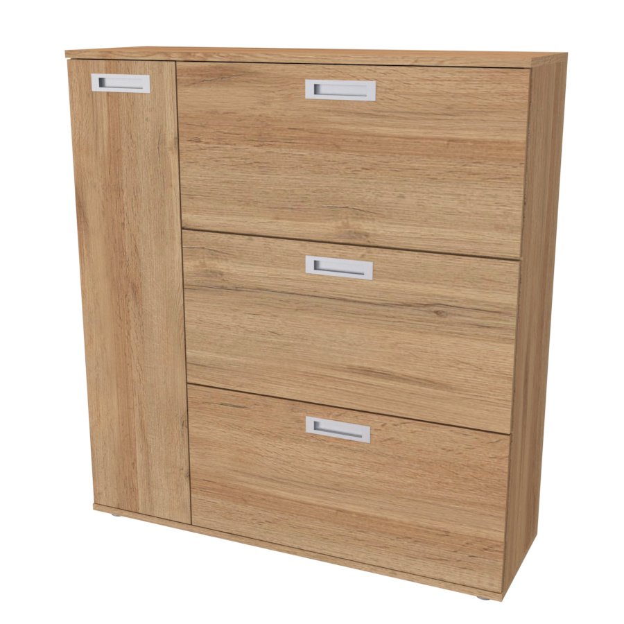 Nadstandartně prostorný botník s postranní skříňkou, pojme obuv celé rodiny. Vyrobeno z lamina o síle 18mm. Výběr akčních dekorů. Kvalitní kování a spojovací materiál je bez použití plastových součástek,vyjma ochranných krytek.