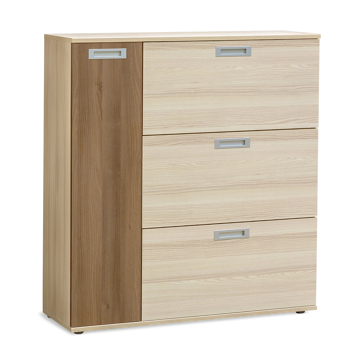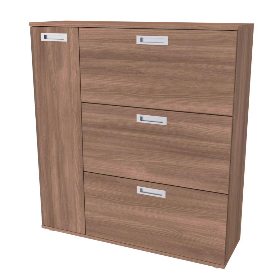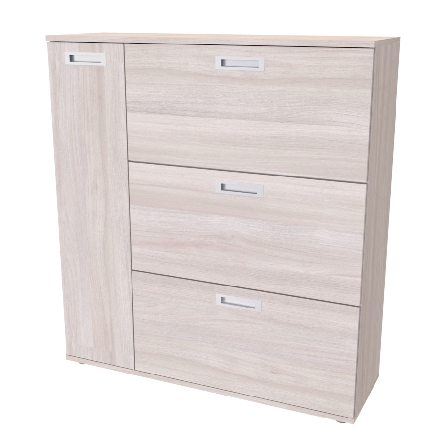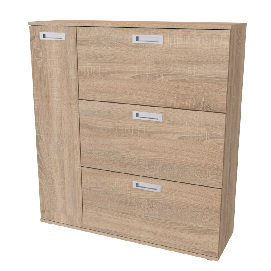 Nadstandartně prostorný botník s postranní skříňkou, pojme obuv celé rodiny. Vyrobeno z lamina o síle 18mm. Výběr akčních dekorů. Kvalitní kování a spojovací materiál je bez použití plastových součástek,vyjma ochranných krytek.