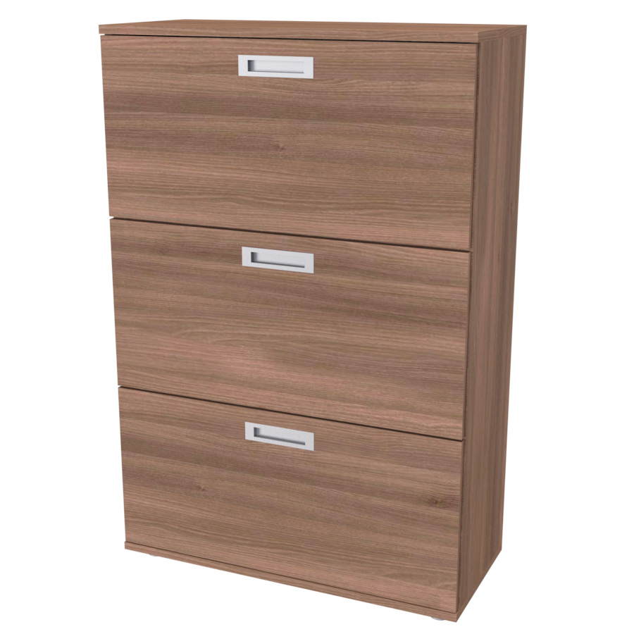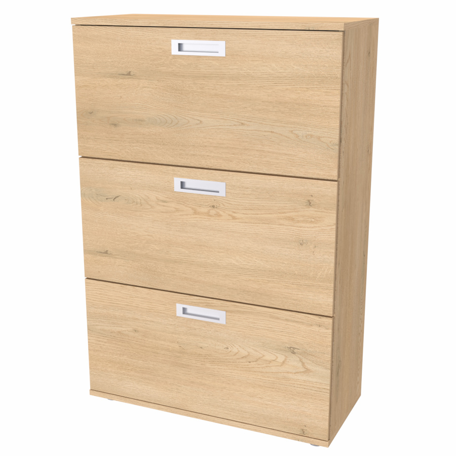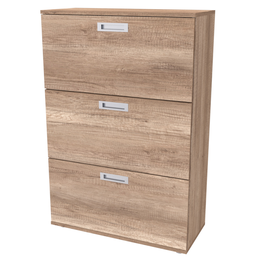 Nadstandartně prostorný botník, jenž pojme obuv celé rodiny. Vyrobeno z lamina o síle 18mm. Výběr akčních dekorů. Kvalitní kování a spojovací materiál je bez použití plastových součástek,vyjma ochranných krytek.