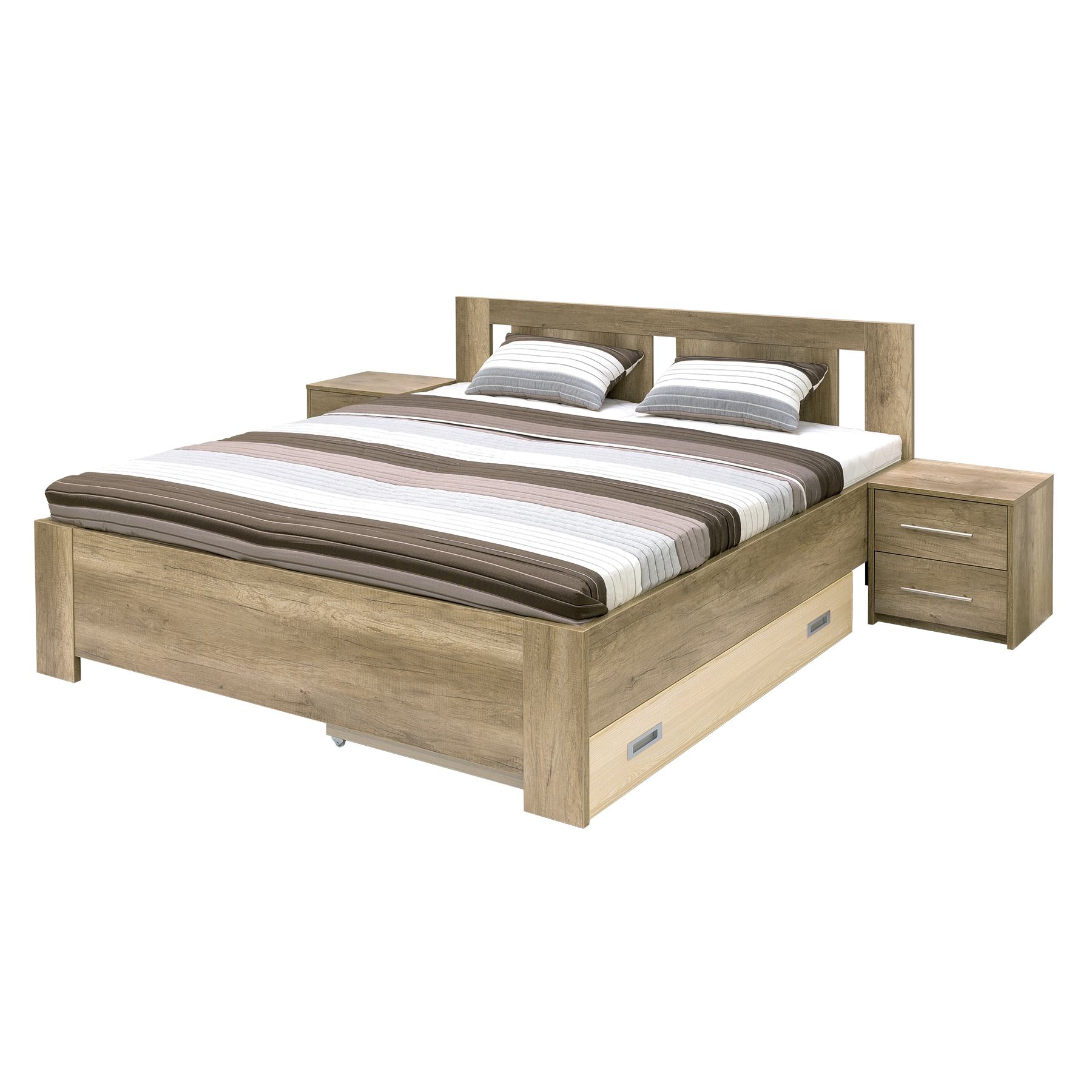 Výsuvný úložný prostor ve 3/4 velikosti, využijete i u dvoulůžek z obou stran. Kolečka nepoškozují žádný typ podlah. Vyrobeno z lamina o síle 18mm. Výběr z několika akčních dekorů. Kvalitní kování a spojovací materiál je bez použití plastových součástek, vyjma ochranných krytek. Efektní a praktické ABS hrany.